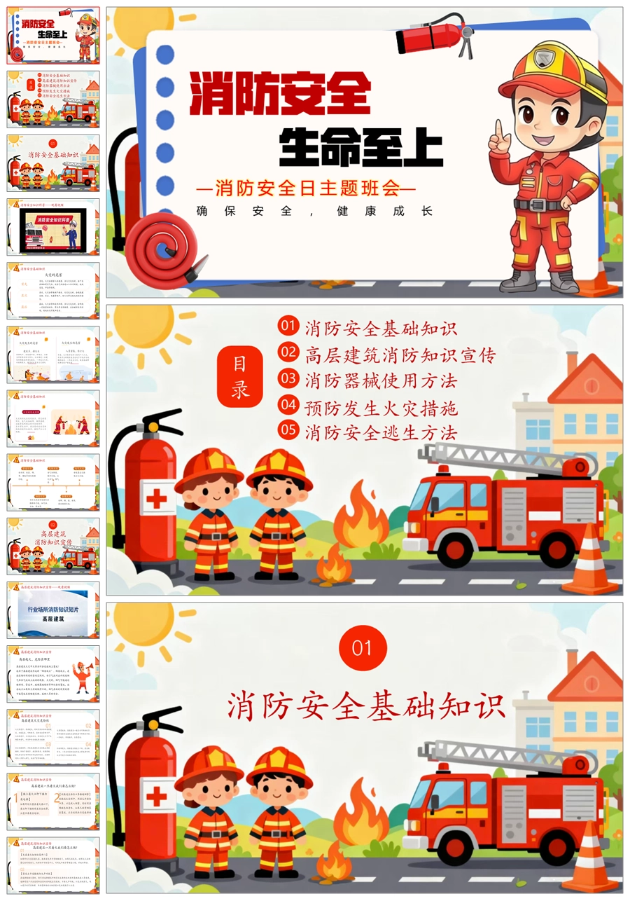 【8610】《消防安全生命至上》消防安全日主题班会ppt课件+教案+主持稿+视频