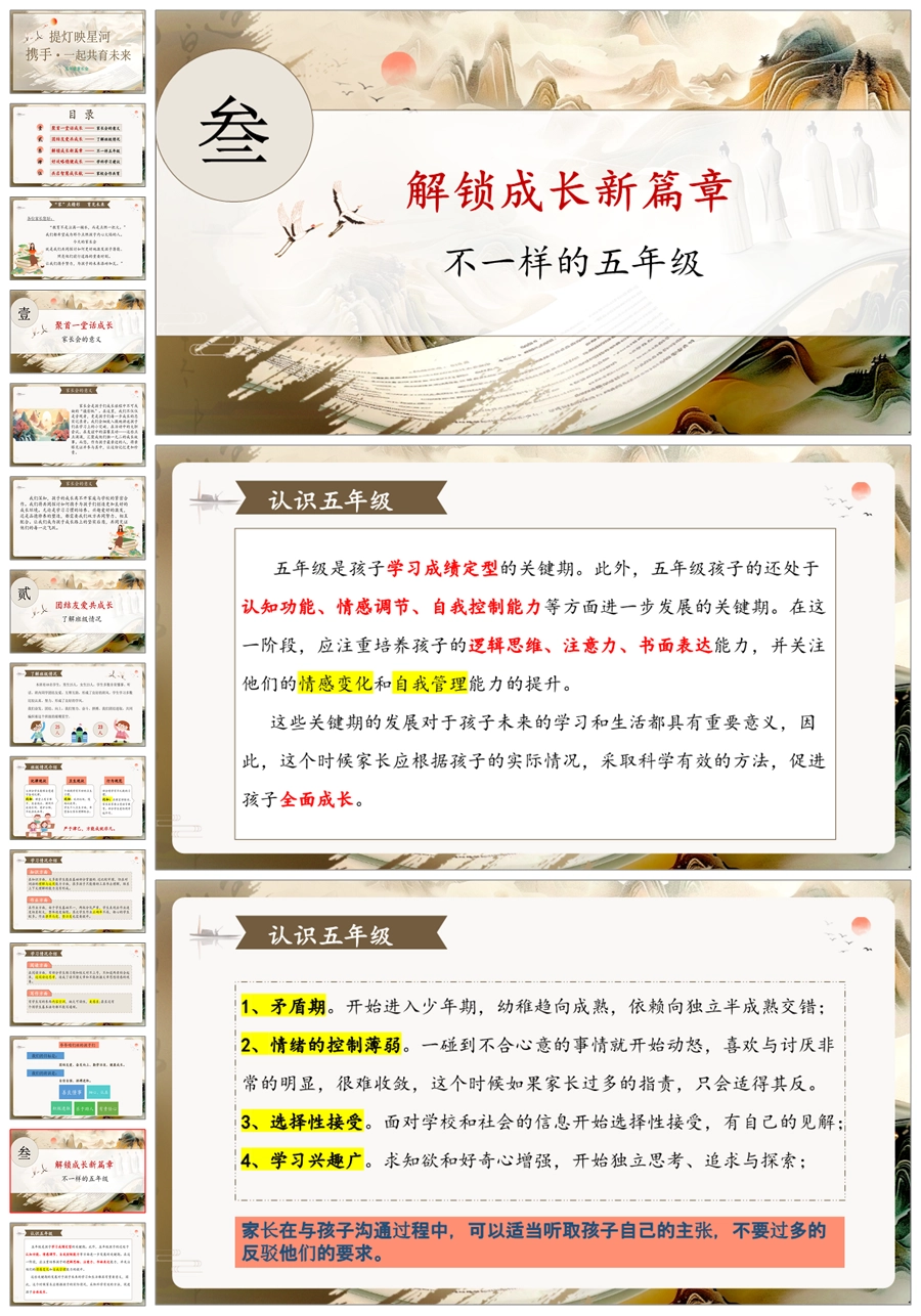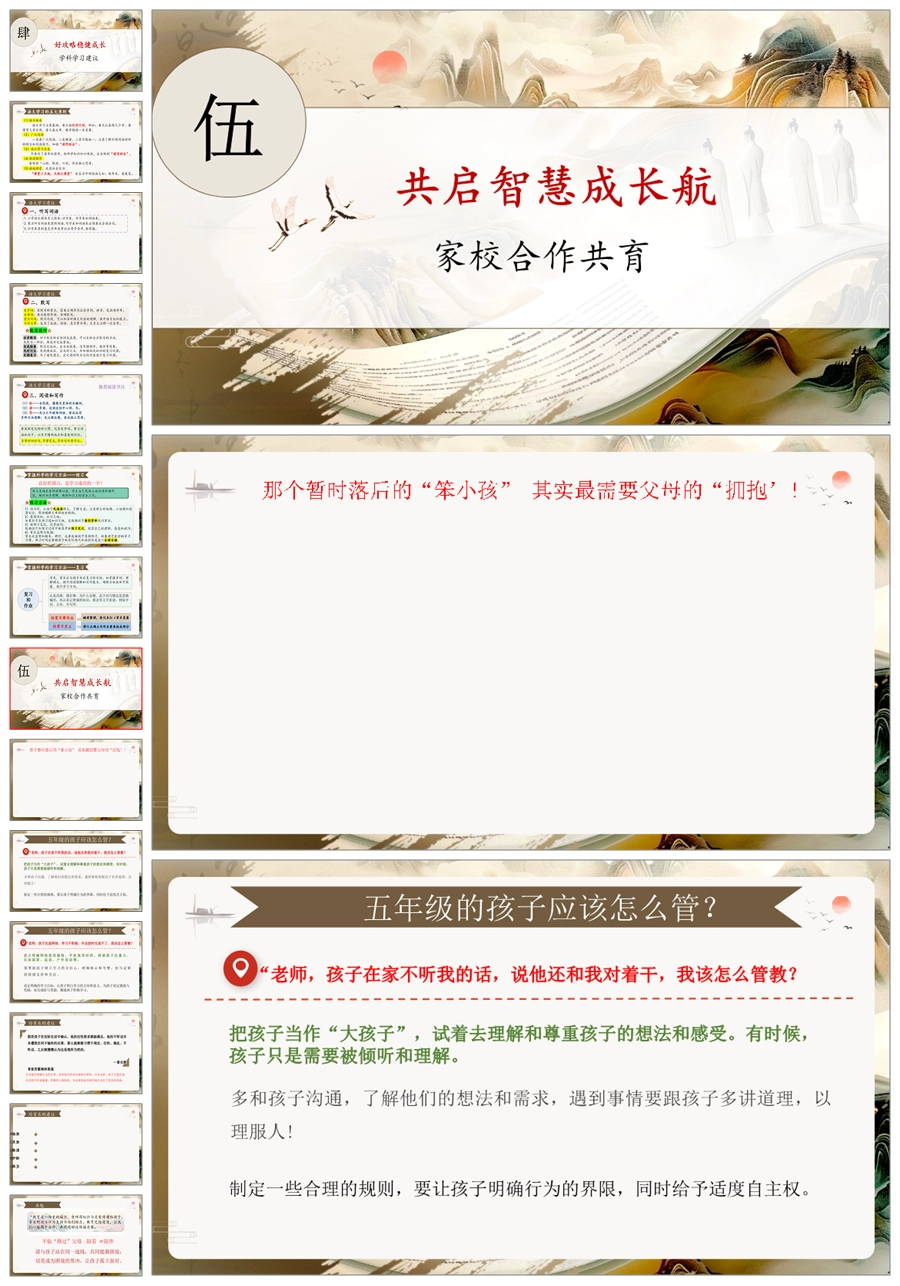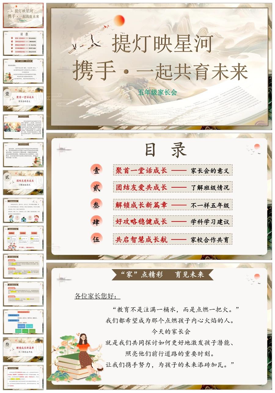 【5124】【五年级】家长会【提灯映星河,携手·一起共育未来】五年级家长会ppt课件+发言稿
