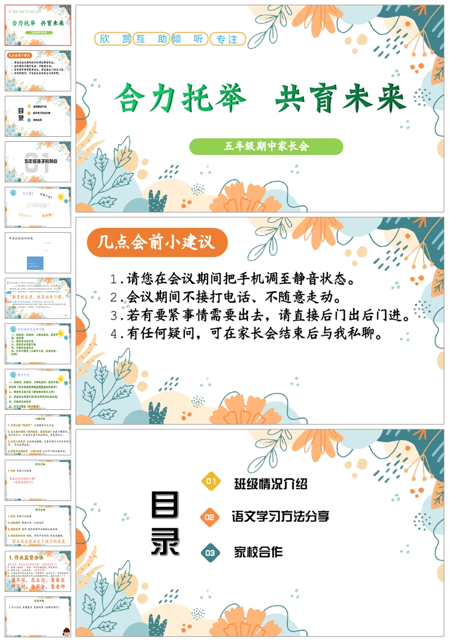 【5125】【五年级】期中家长会【合力托举 共育未来】(作业监督办法及习惯养成策略)五年级家长会ppt课件+发言稿