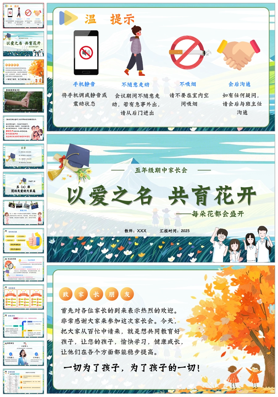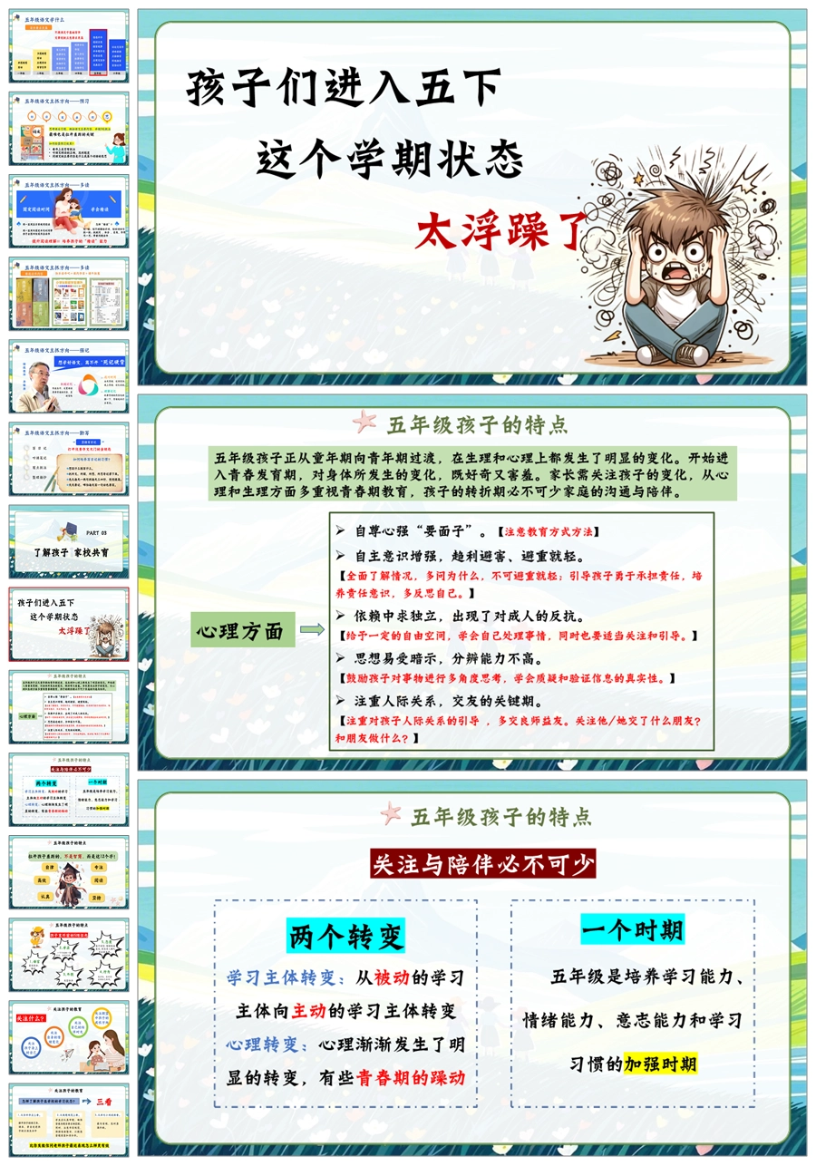 【5136】【五下】【语文】【以爱之名 共育花开】五年级下册期中家长会ppt课件+发言稿