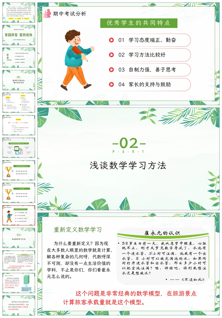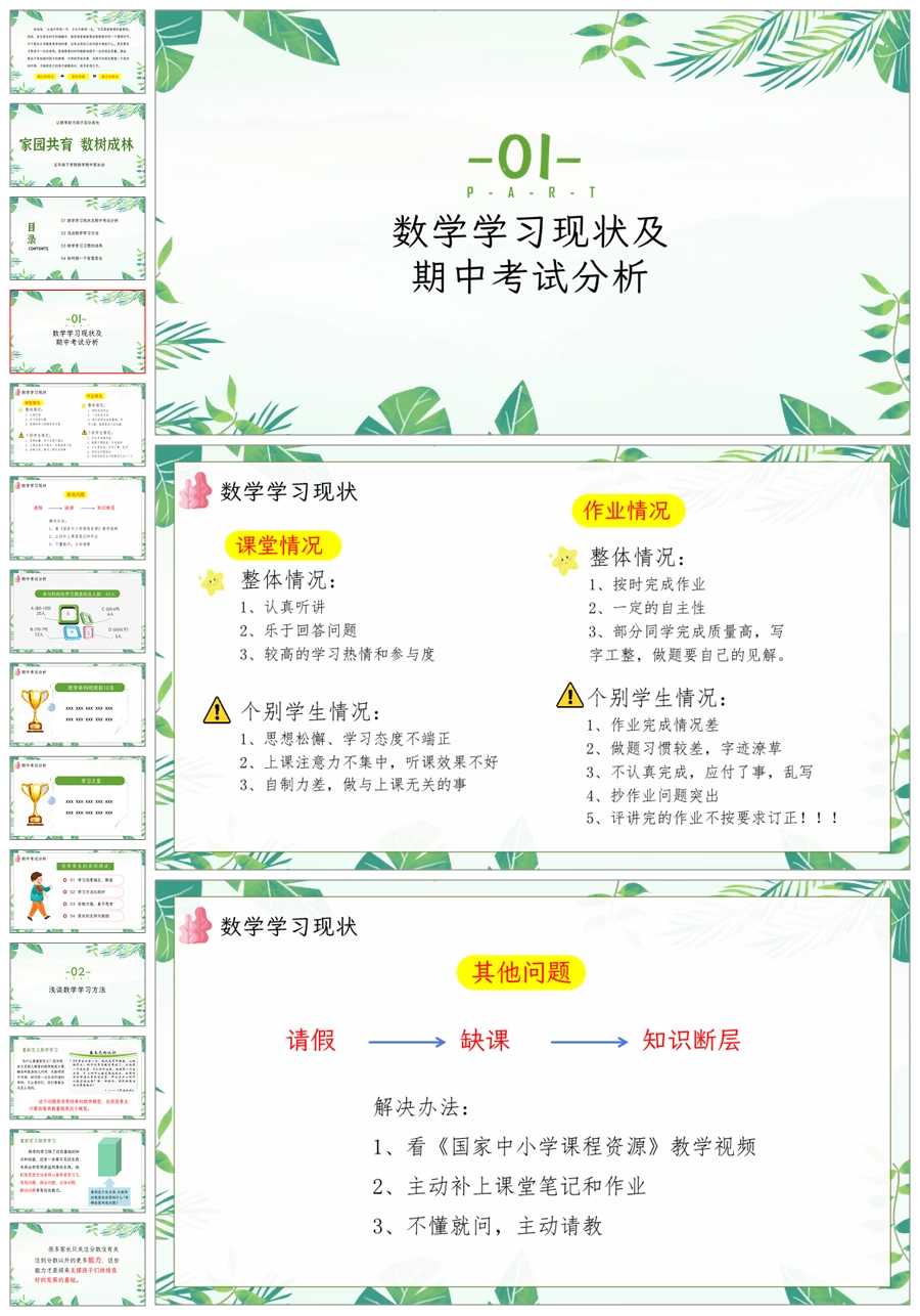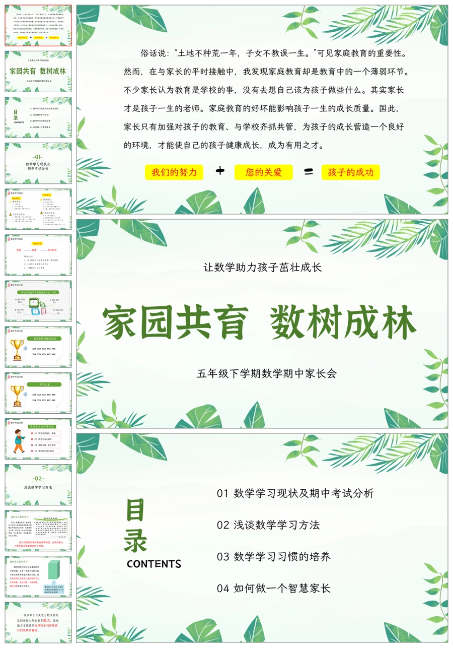 首页 五年级家长会 【5146】【五下】【数学】【家园共育,数树成林】五年级下学期期中家长会ppt课件+发言稿