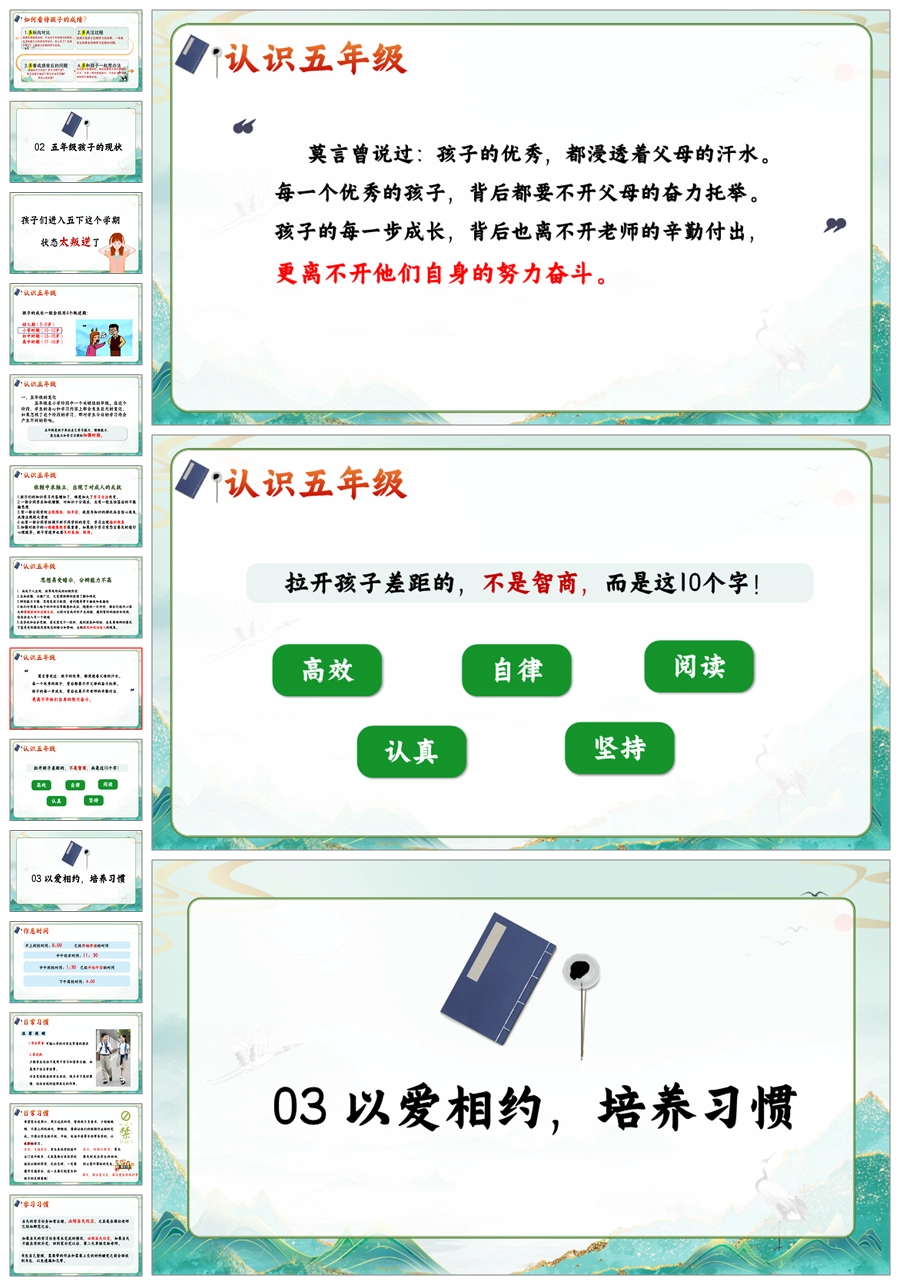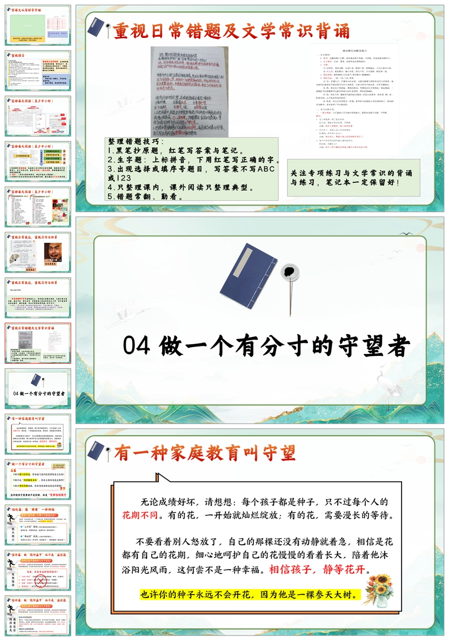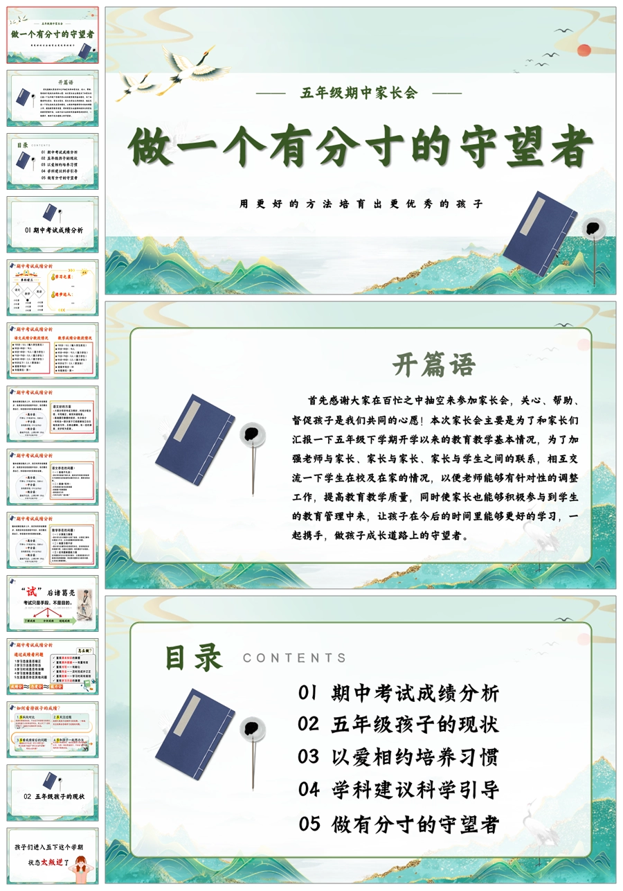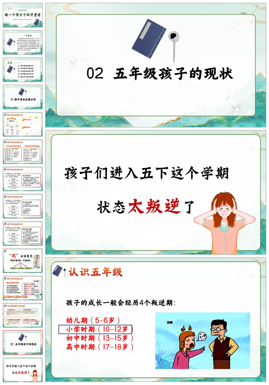 首页 五年级家长会 【5147】【五下】【语文】【做一个有分寸的守望者】五年级下学期期中家长会ppt课件+发言稿