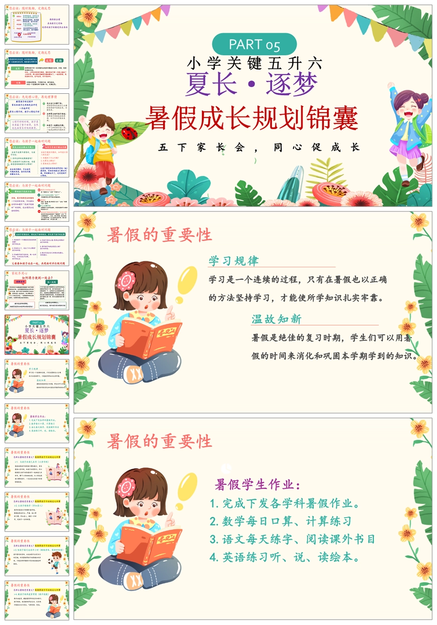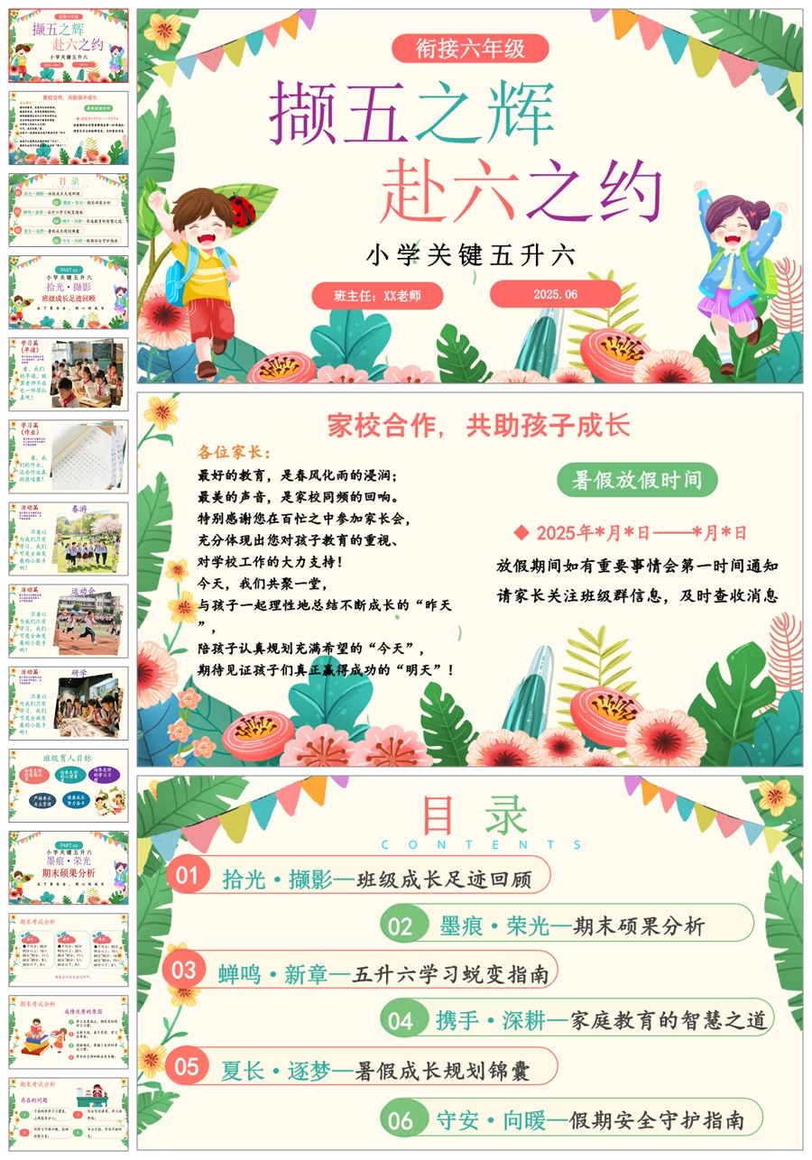 首页 五年级家长会 【5150】【五下】【语文】【撷五之辉,赴六之约】五年级下学期期末家长会ppt课件+发言稿
