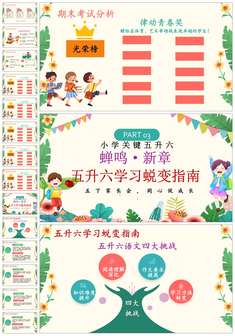 【5150】【五下】【语文】【撷五之辉,赴六之约】五年级下学期期末家长会ppt课件+发言稿