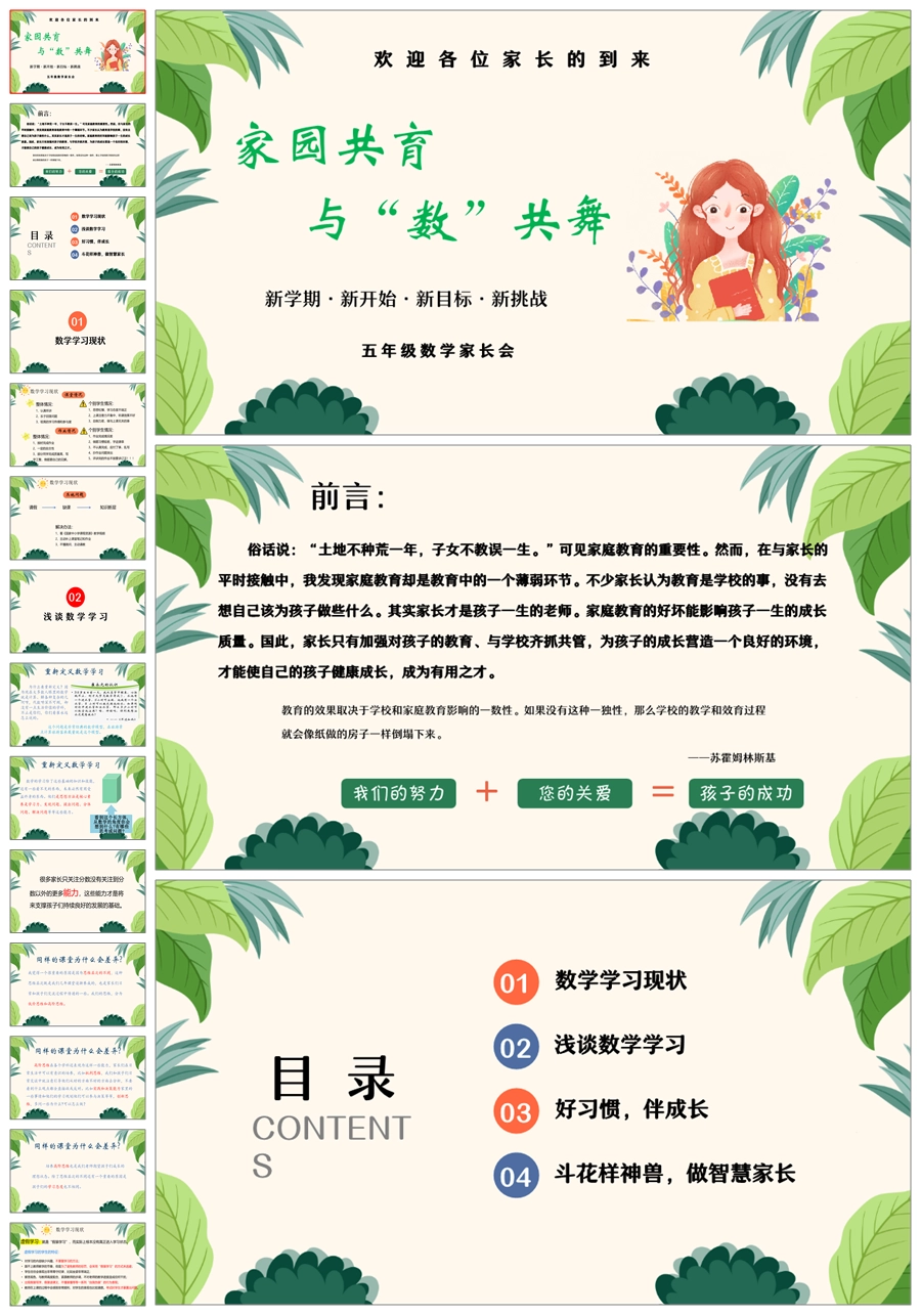【5154】【五年级】【数学】【家园共育,与数共舞】家长会ppt课件+发言稿