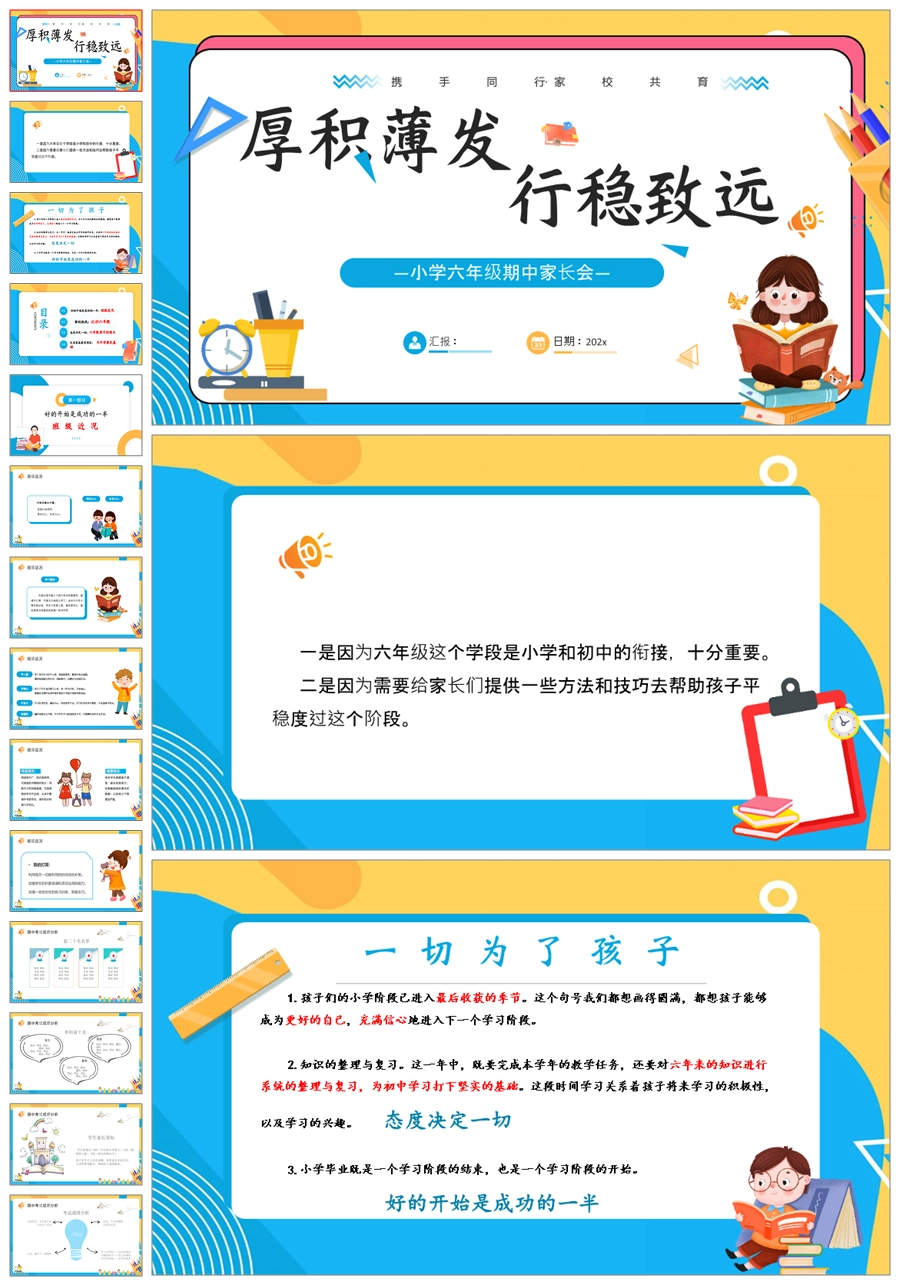 【5163】【六上】期中家长会【厚积薄发 行稳致远】六年级上学期家长会PPT课件+发言稿