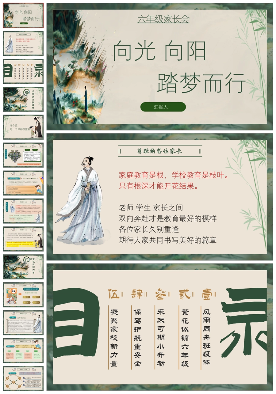 【5167】【六上】家长会【向光向阳,踏梦而行】六年级上学期家长会PPT课件+发言稿