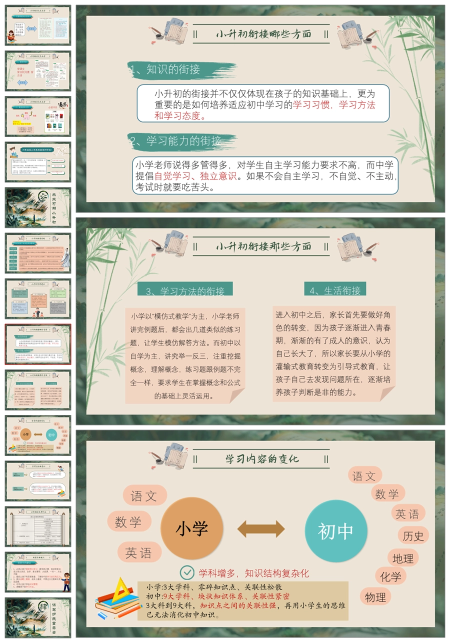【5583】《自习的静成长的劲》竹子定律班会励志主题班会PPT课件+发言稿