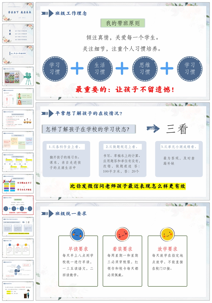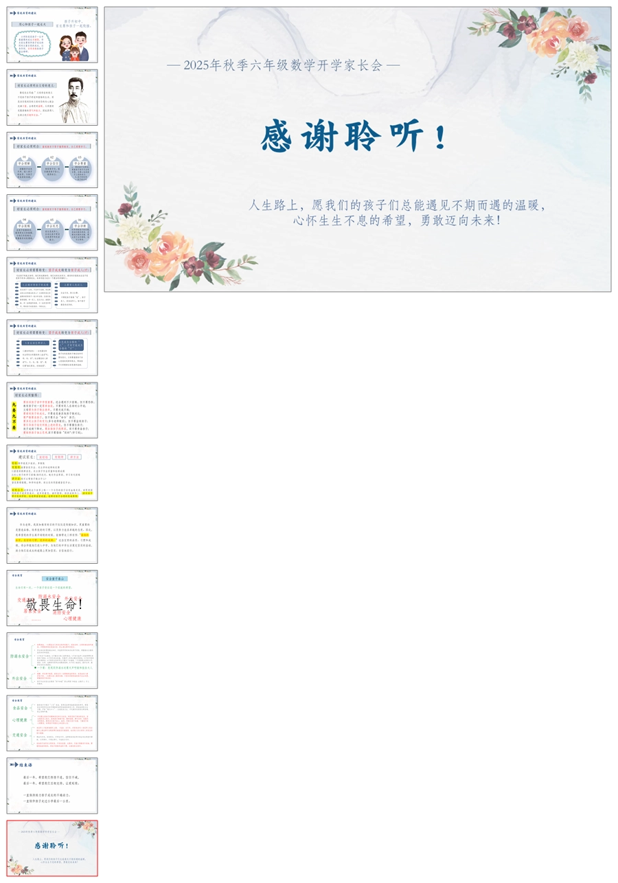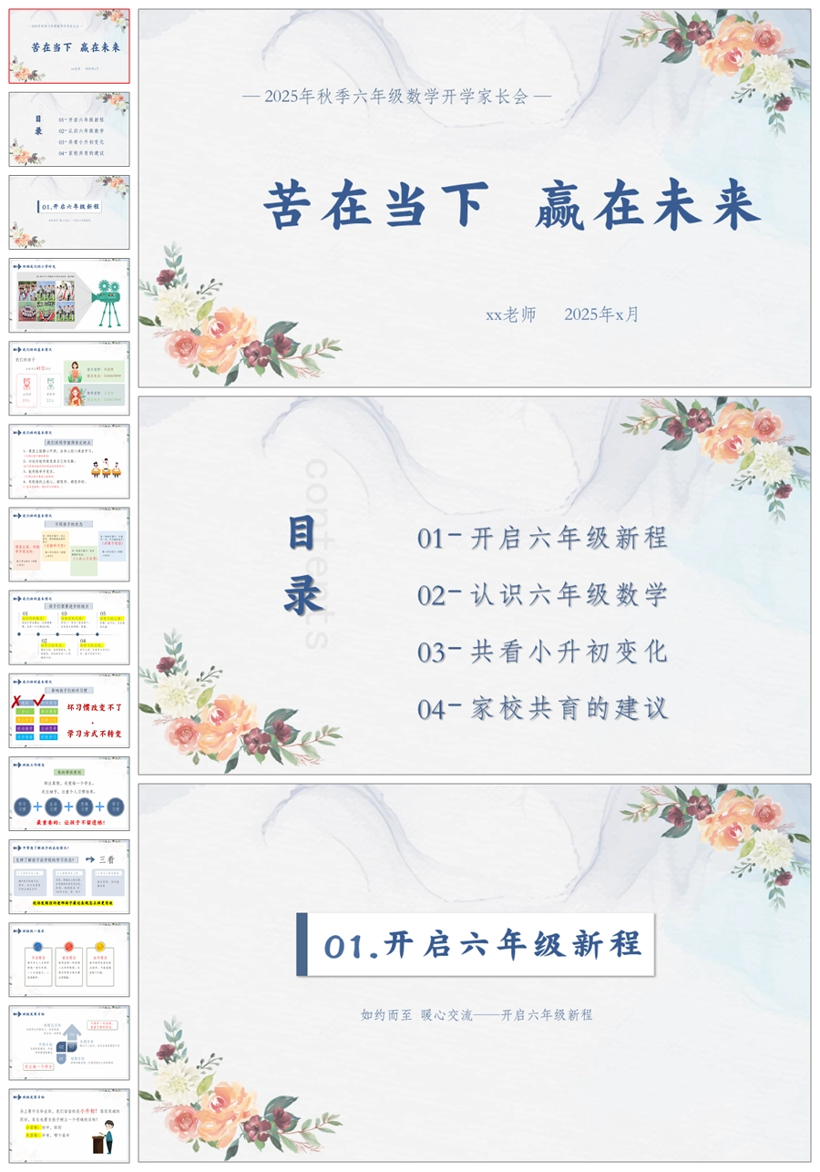 【5177】【六上】【数学】【苦在当下 赢在未来】六年级上学期开学家长会-人教版PPT课件+发言稿
