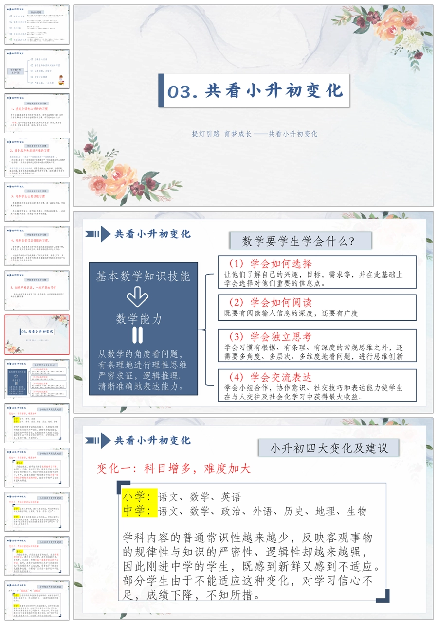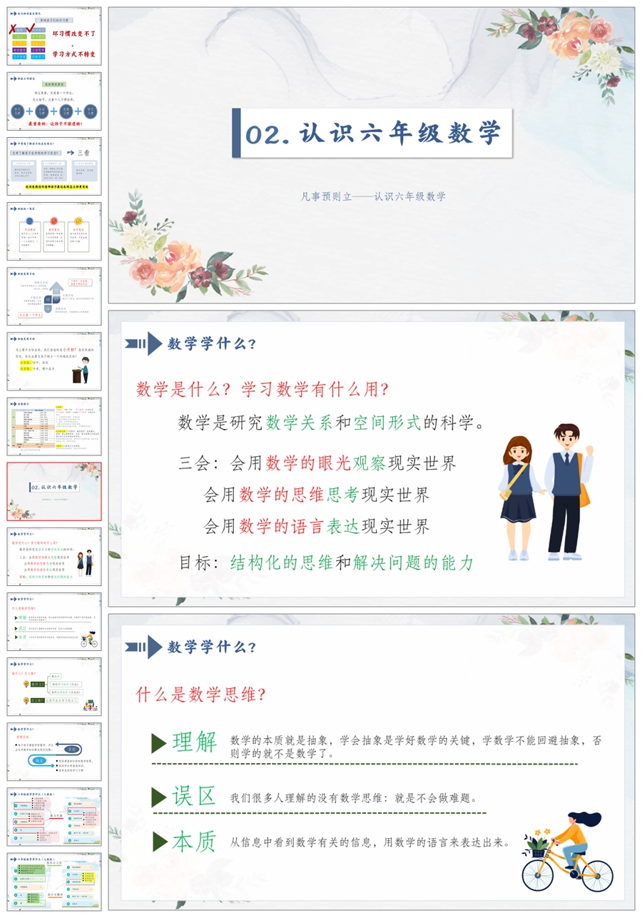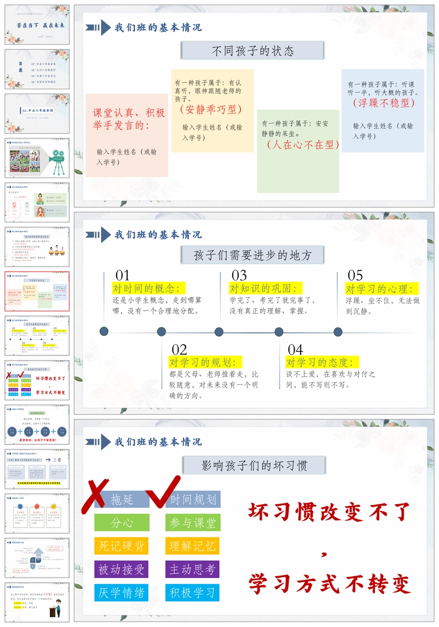 【5177】【六上】【数学】【苦在当下 赢在未来】六年级上学期开学家长会-人教版PPT课件+发言稿