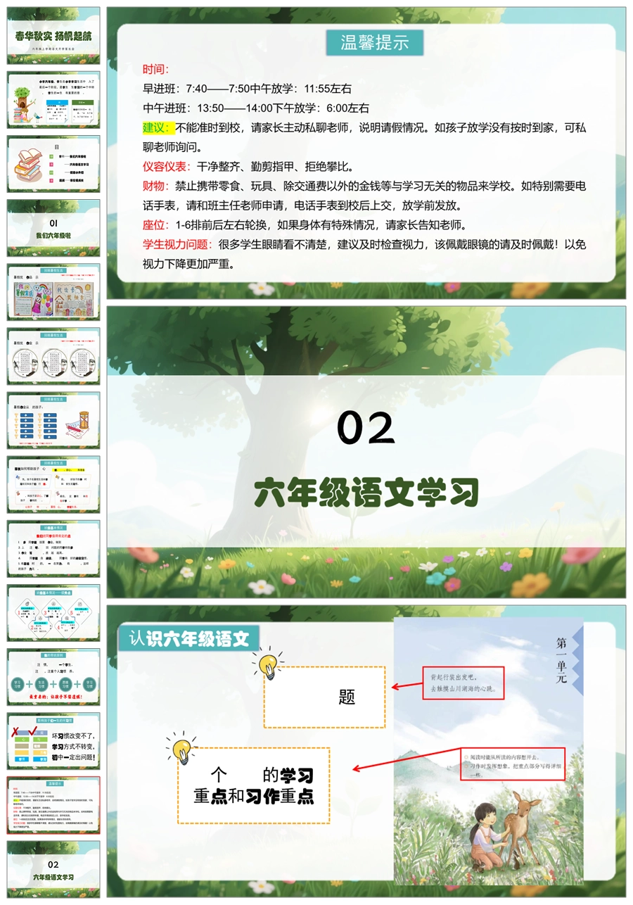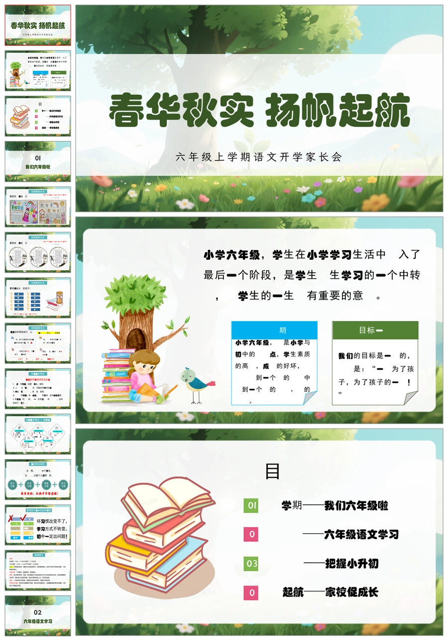 【5175】【六上】【语文】【春华秋实,扬帆起航】六年级上学期开学家长会PPT课件+发言稿