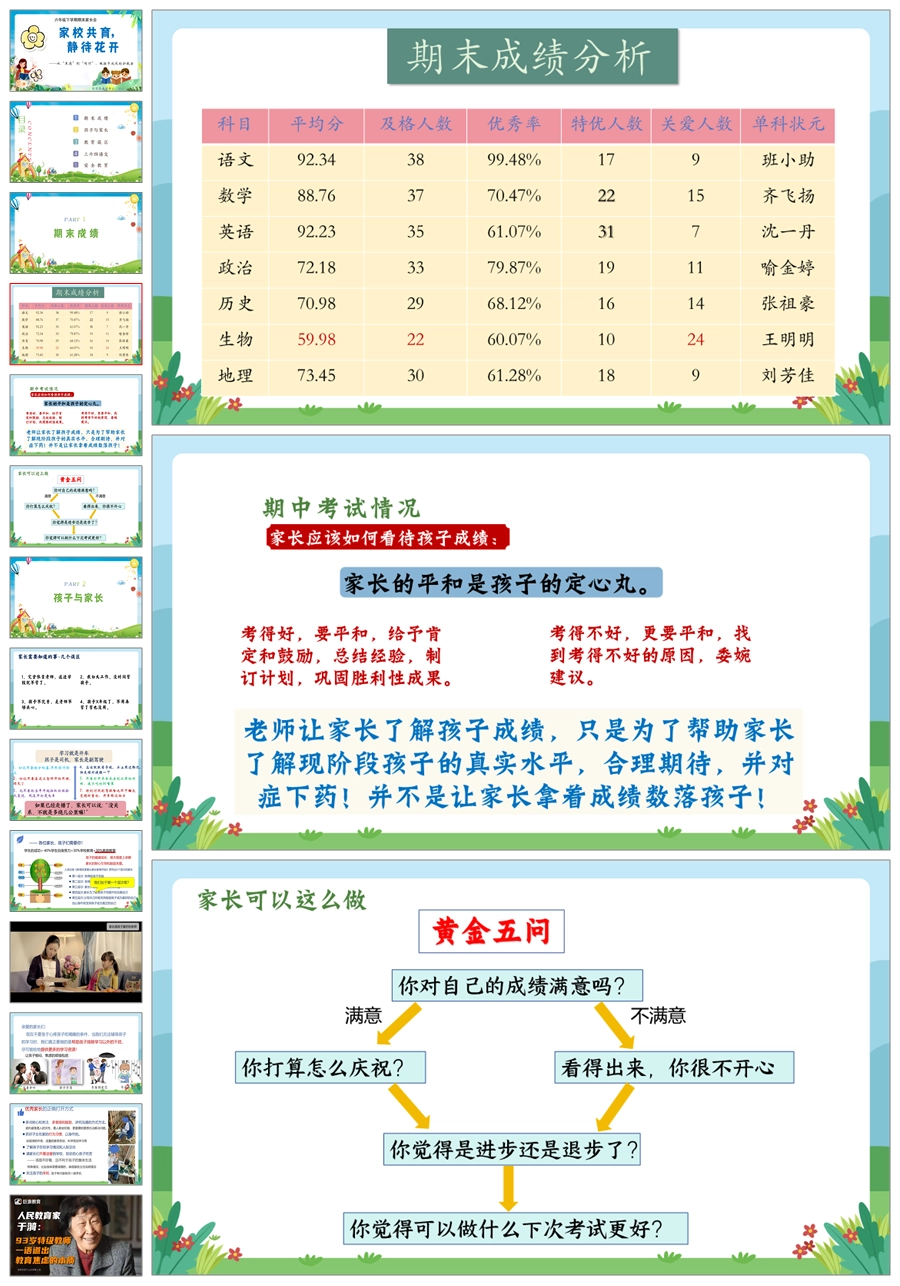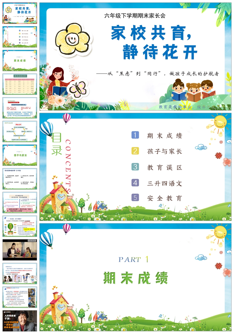 【8430】六年级下(六升七)期末语文家长会《家校共育静待花开》ppt课件+配套发言稿