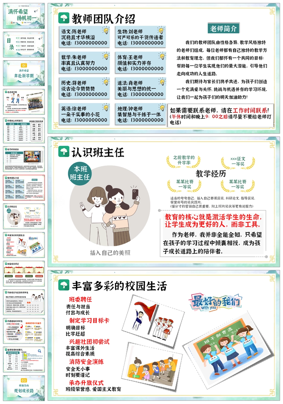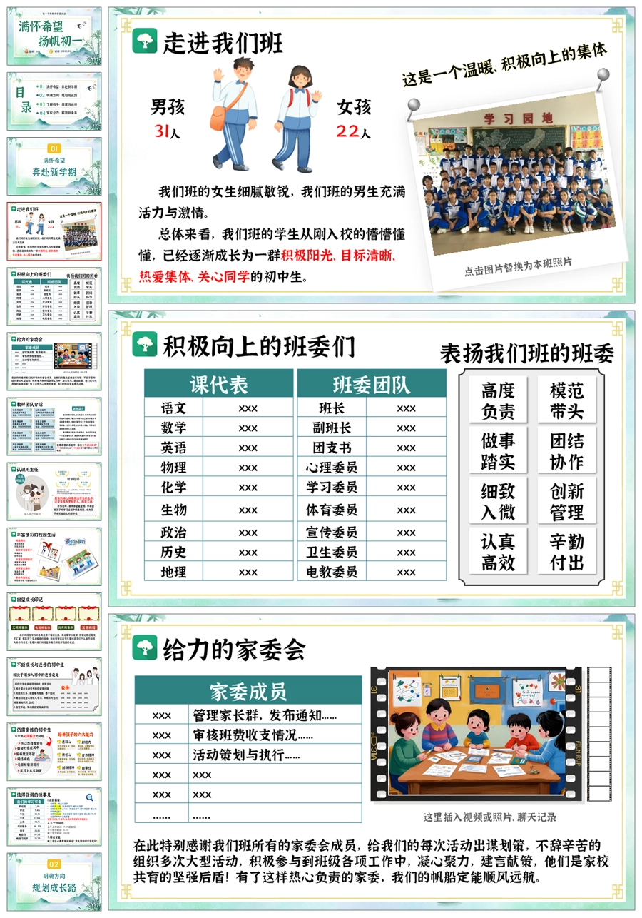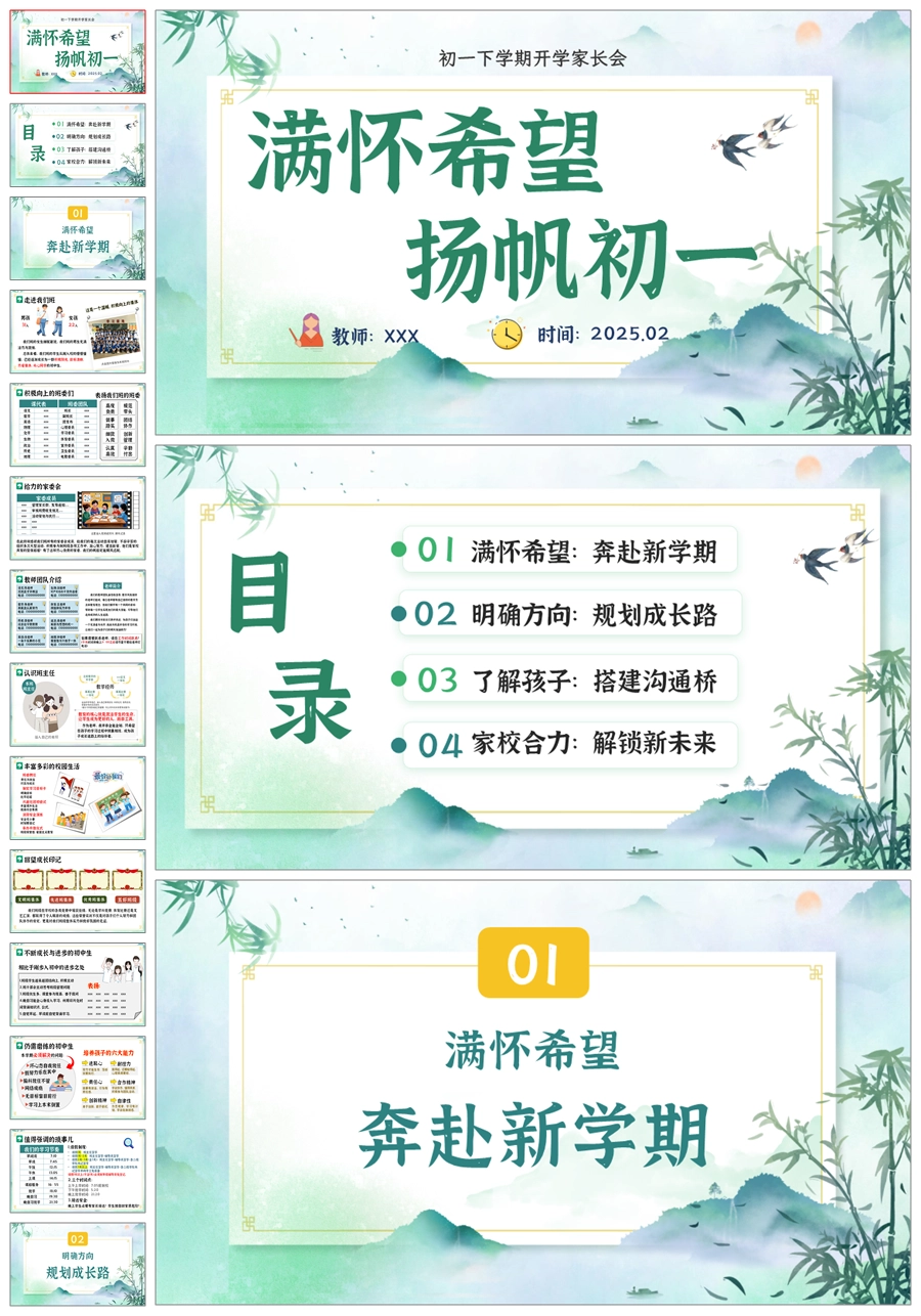 【5187】【初一】【下开学】七年级家长会【满怀希望 扬帆初一】PPT课件+发言稿