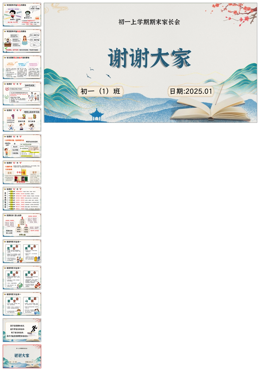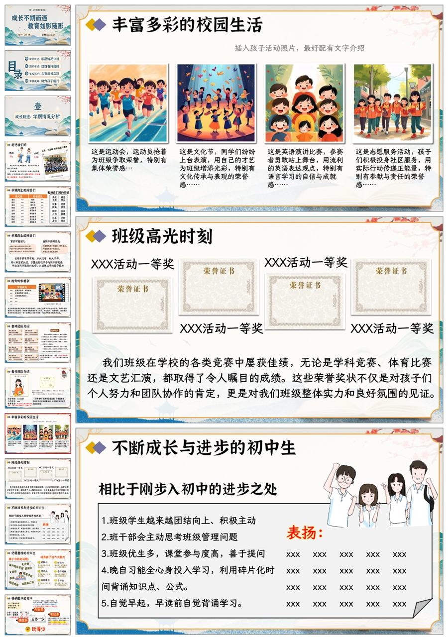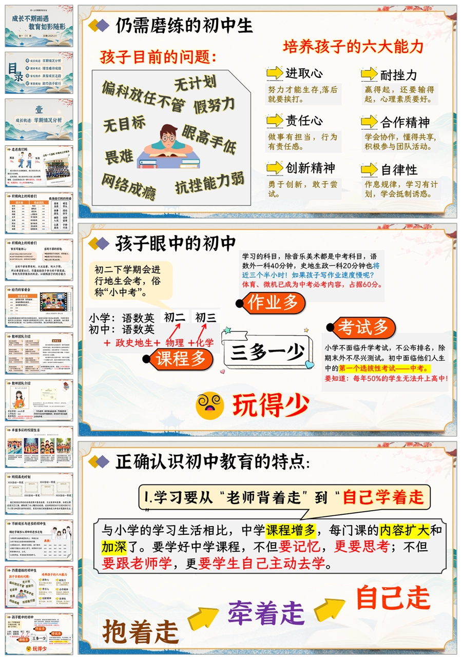 【5193】【初一】上期末家长会【成长不期而遇 教育如影随形】PPT课件+发言稿