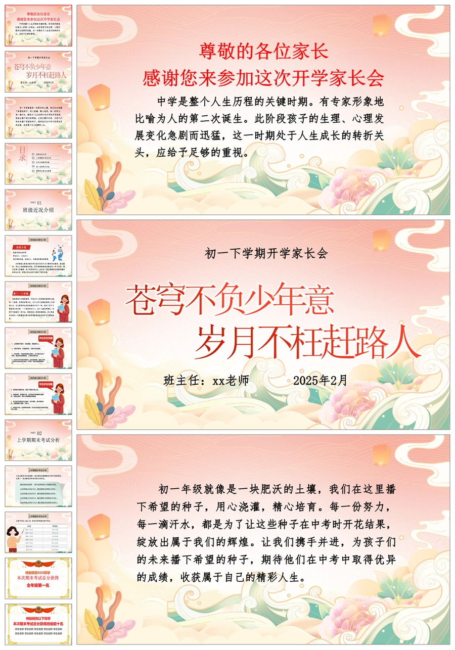 【5195】【初一】七年级下学期开学家长会【苍穹不负少年意,岁月不枉赶路人】PPT课件+发言稿