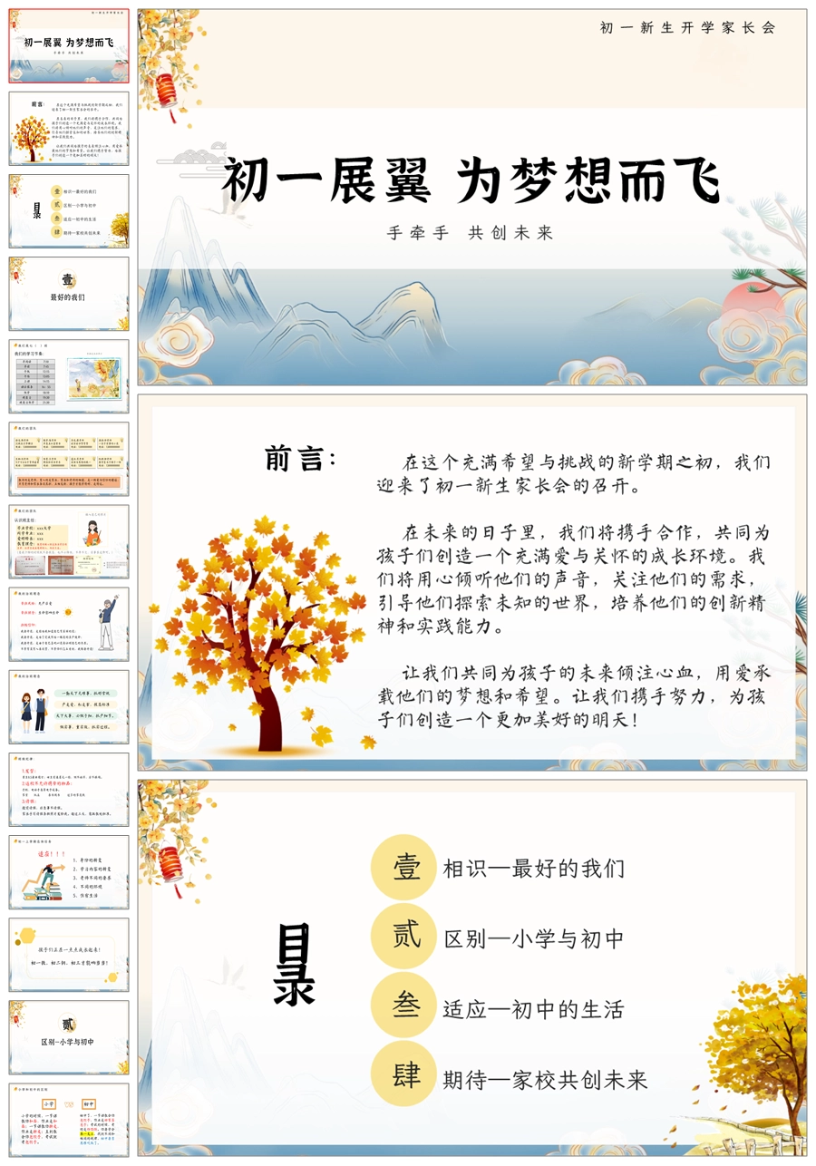 首页 初一家长会 【5203】【初一】【上学期】【初一展翼 为梦想而飞】七年级上学期开学家长会PPT课件+发言稿