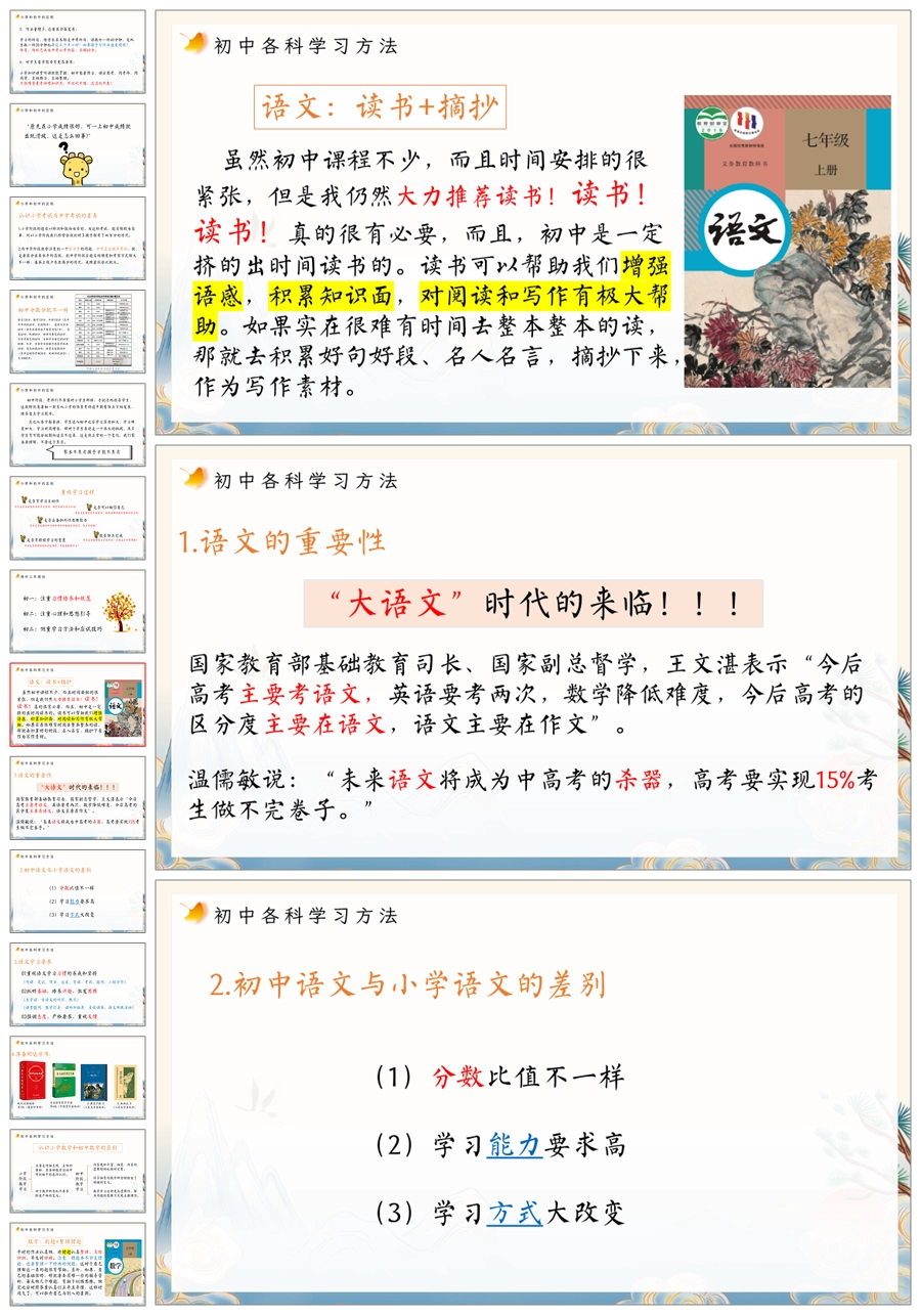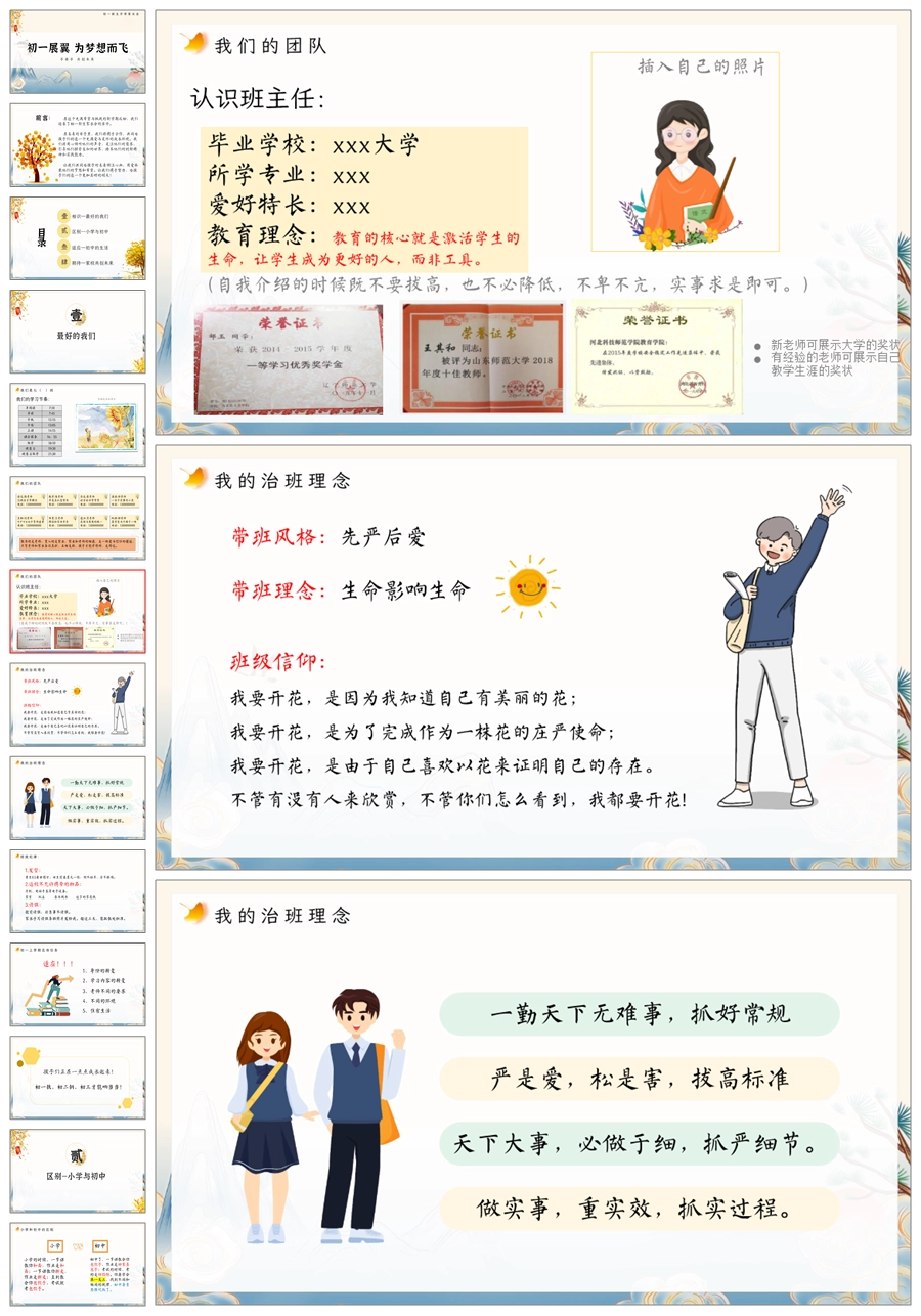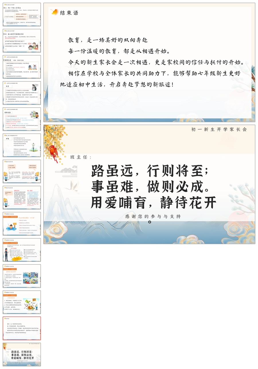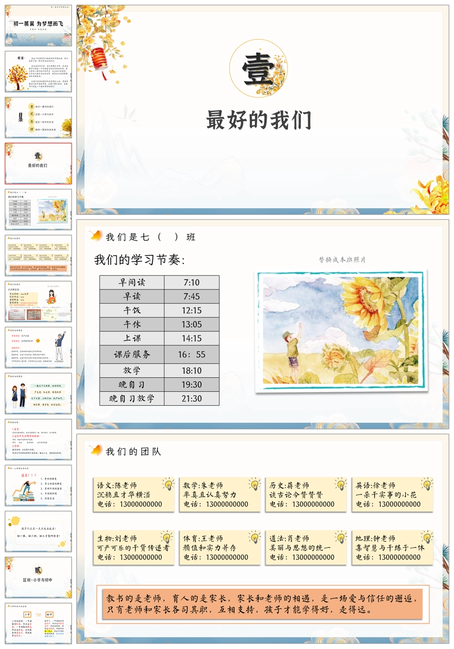 【5203】【初一】【上学期】【初一展翼 为梦想而飞】七年级上学期开学家长会PPT课件+发言稿