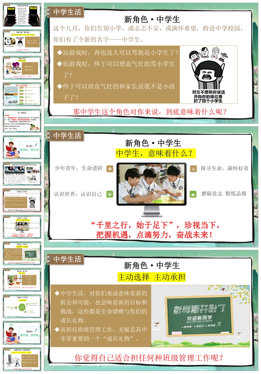 【5209】【初一】新生开学第一课主题班会【从这里踏上青春路,遇见更好自己】PPT课件+发言稿