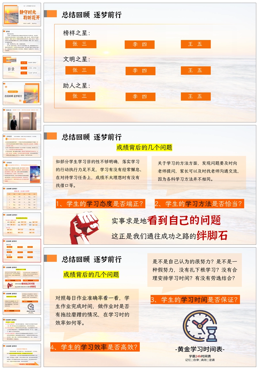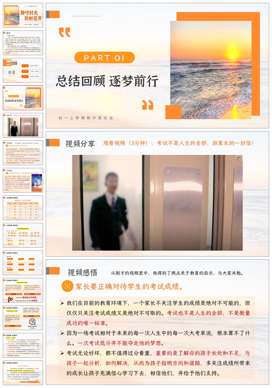 【5214】【初一】【上学期】【静守时光,聆听花开】七年级上学期期中家长会PPT课件+发言稿