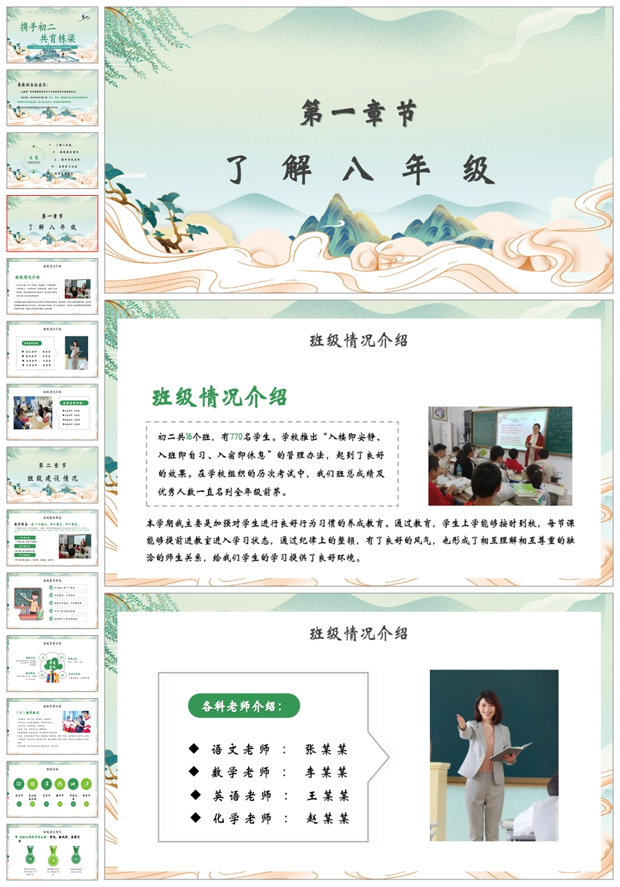 【5219】【初二】八年级期中家长会【携手初二 共育栋梁】PPT课件+发言稿