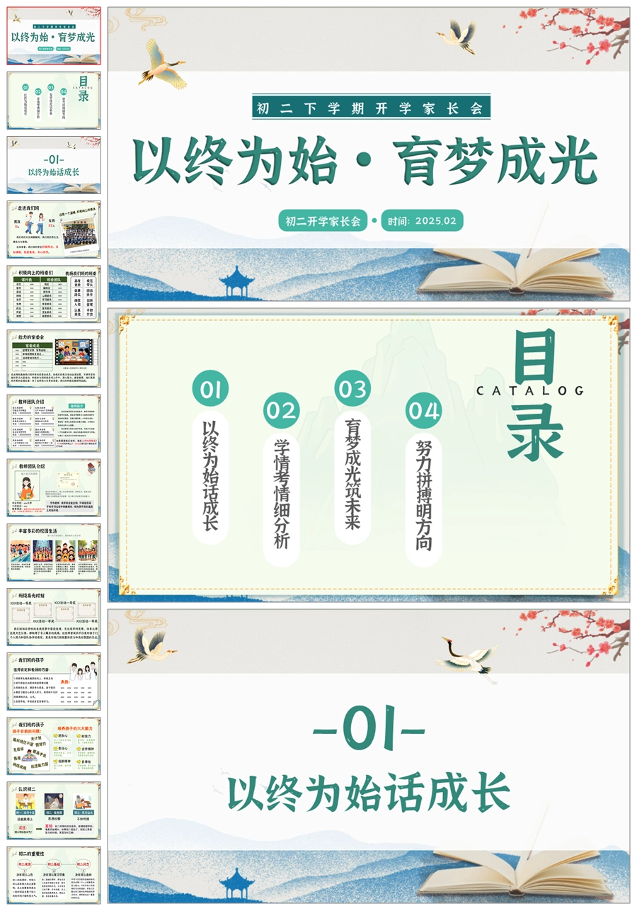 【5223】【初二】八年级下开学家长会【以终为始 育梦成光】PPT课件+发言稿