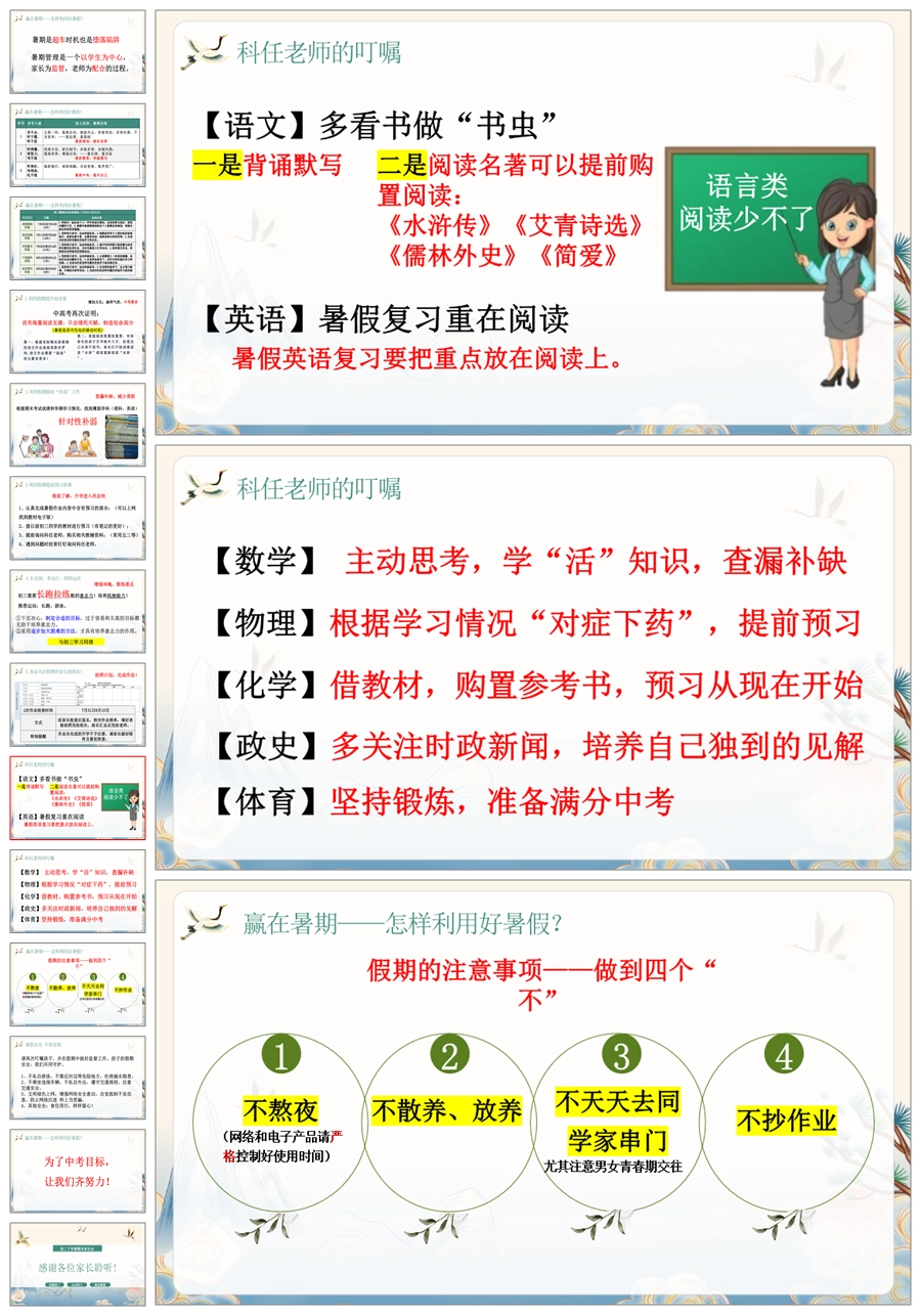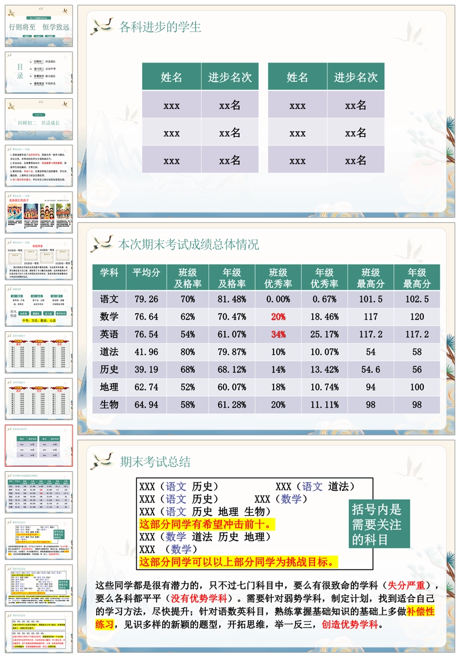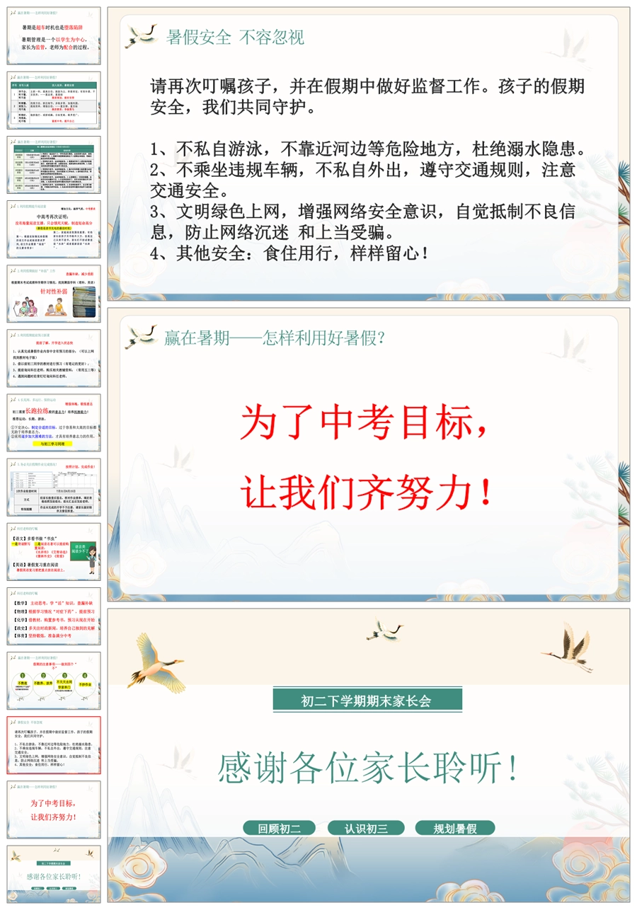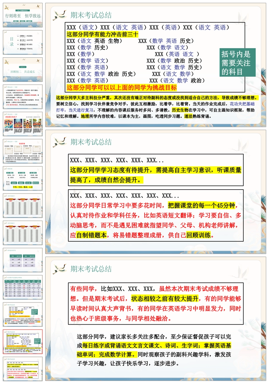 【5227】【初二】【行则将至,恒学致远】八年级暑假前期末家长会PPT课件+发言稿