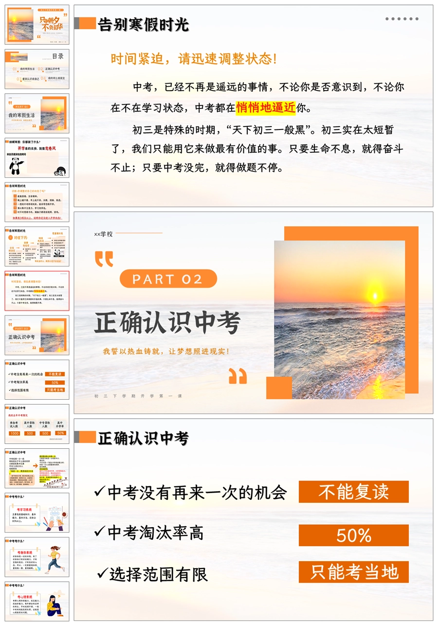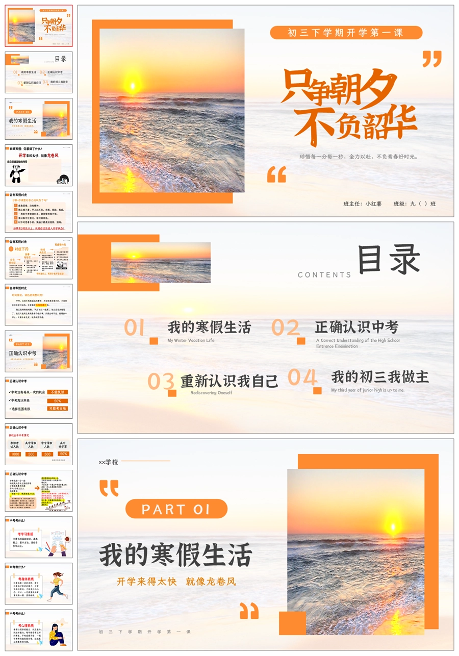 【5242】【初三下学期】九年级开学第一课【只争朝夕 不负韶华】PPT课件+发言稿