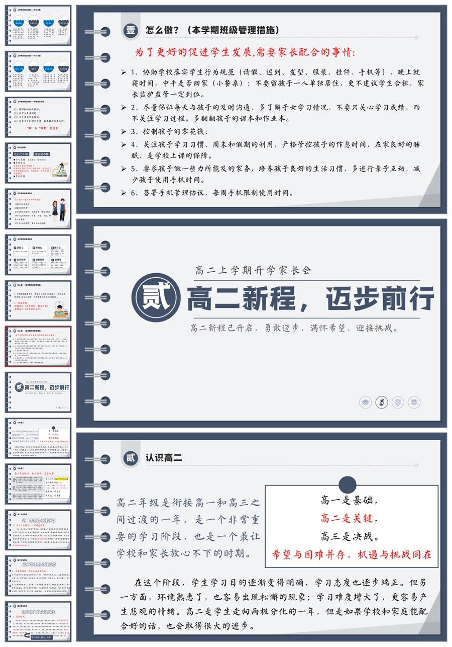 【5203】【高二上】【告别高一 迈向高二】高二上学期开学家长会PPT课件+发言稿