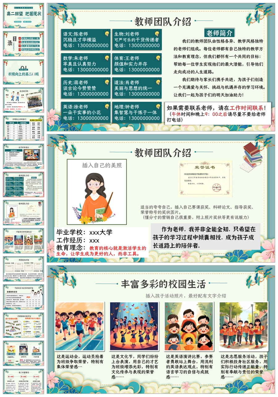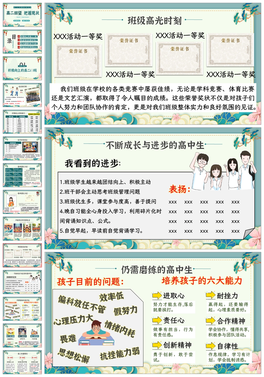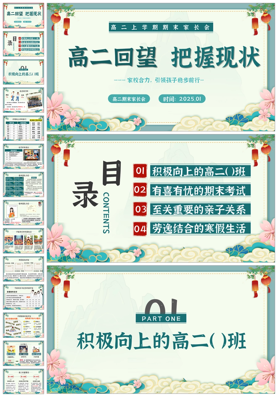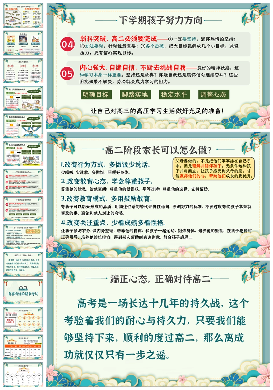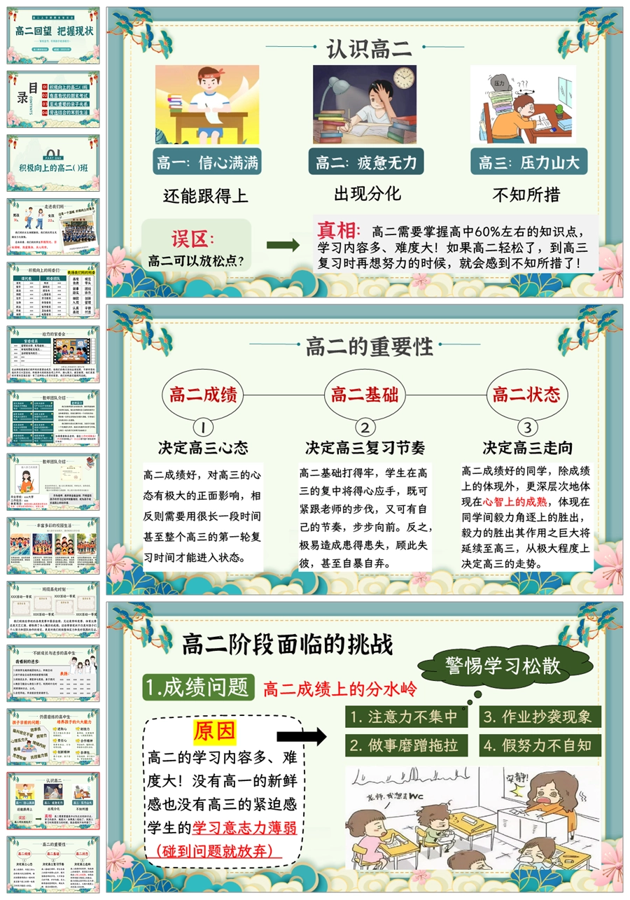 【5209】【高二上】【高二回望 把握现状】高二上学期期末家长会PPT课件+发言稿