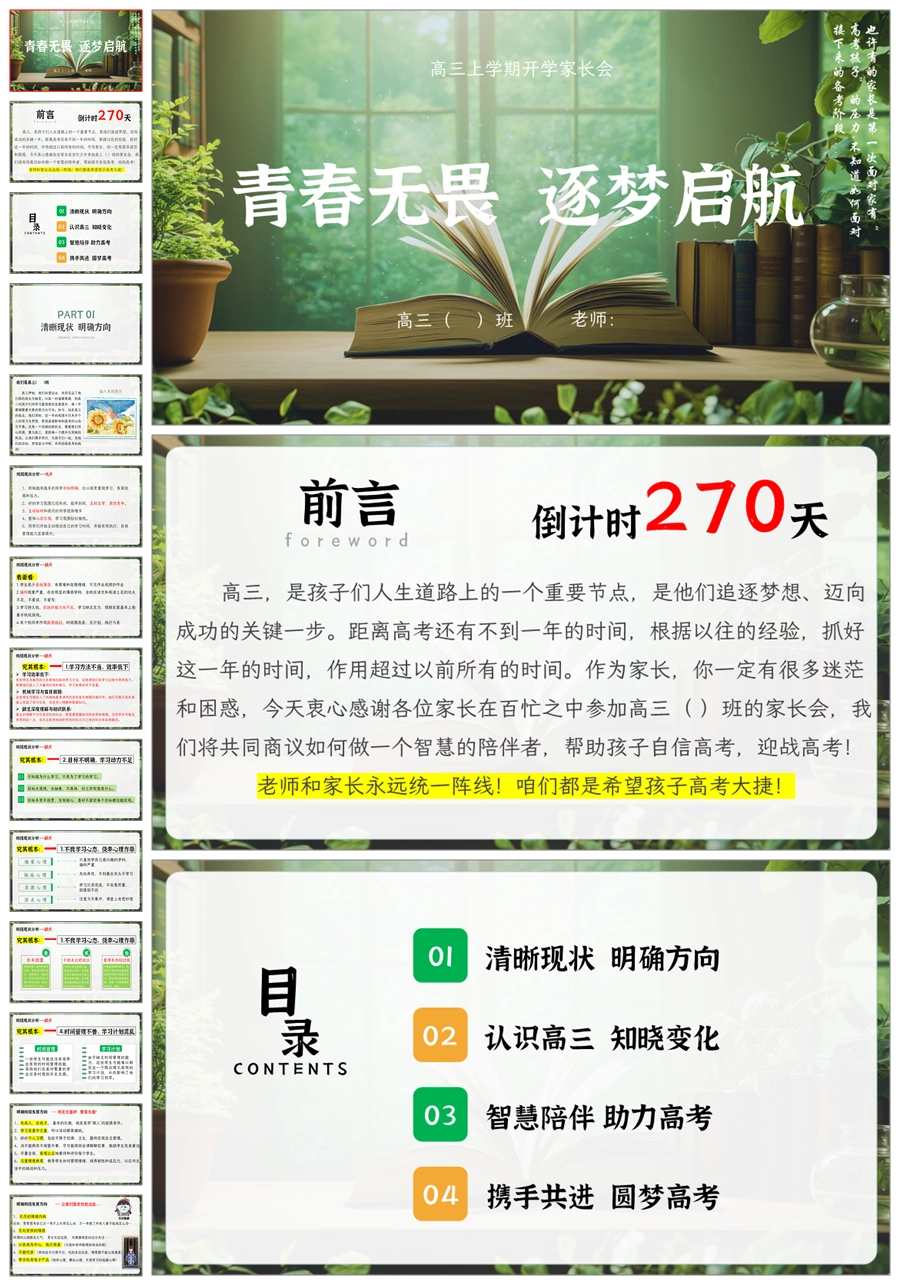 【5226】【高三上】【青春无畏,逐梦启航】高三上学期开学家长会PPT课件+发言稿