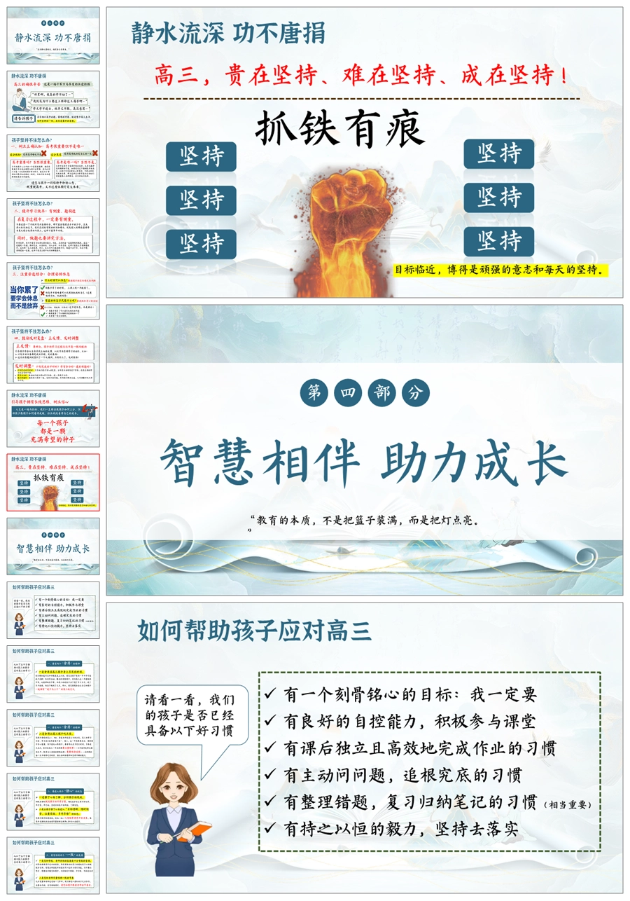首页 高三家长会 【5228】【高三上】【师生同绘蓝图,青春不负韶华】高三上学期期中家长会PPT课件+发言稿