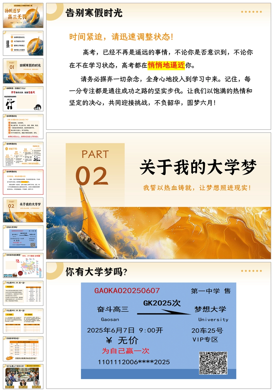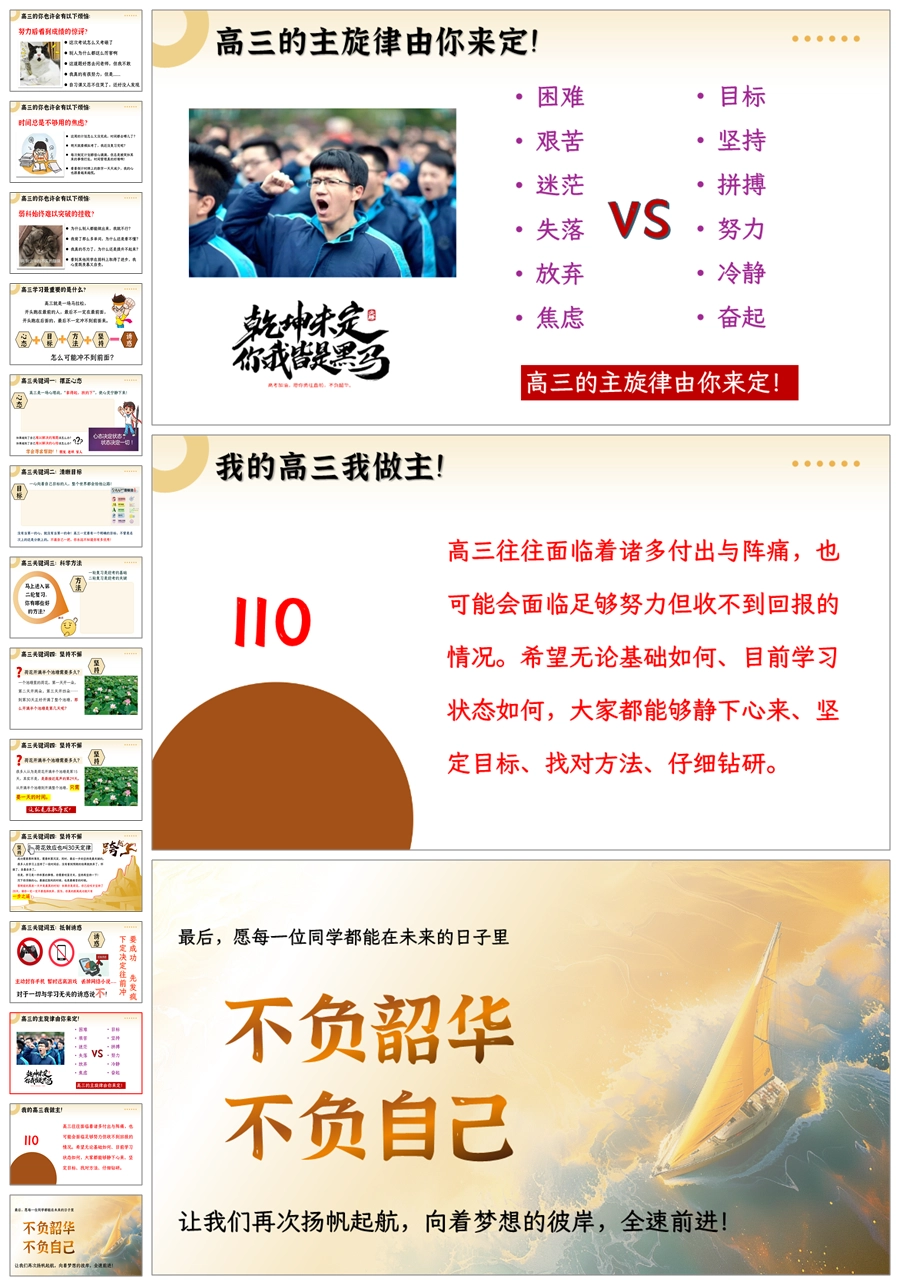 【5221】【高三下】高三下学期开学第一课【扬帆逐梦 高三无畏】PPT课件+发言稿