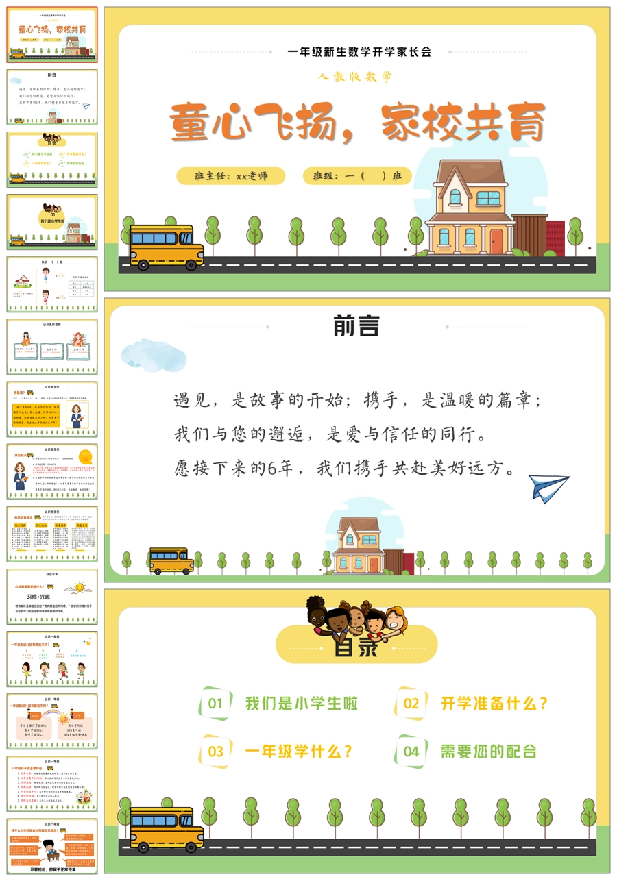 【5235】【一上】【数学】【小学 我们来啦】一年级上学期开学家长会-人教版PPT课件+发言稿