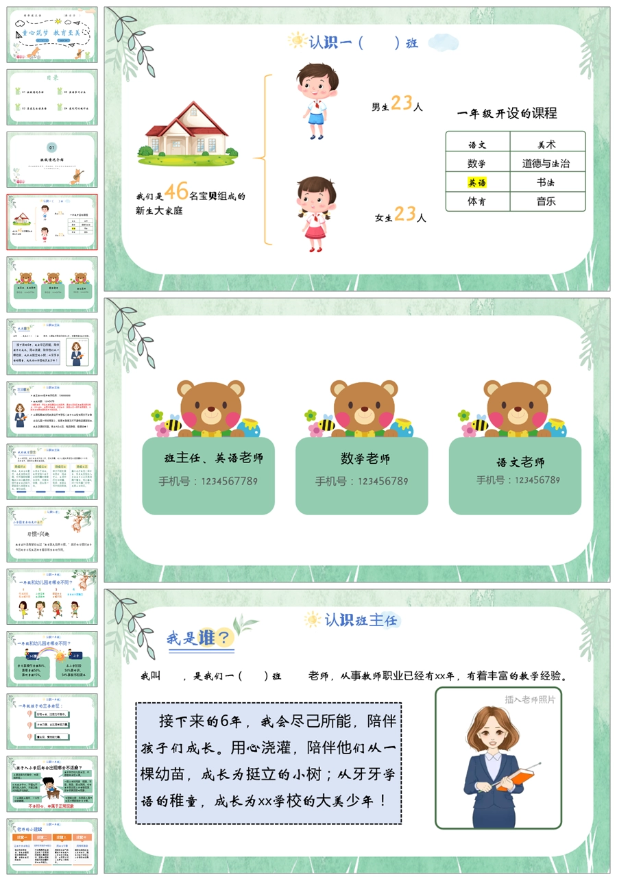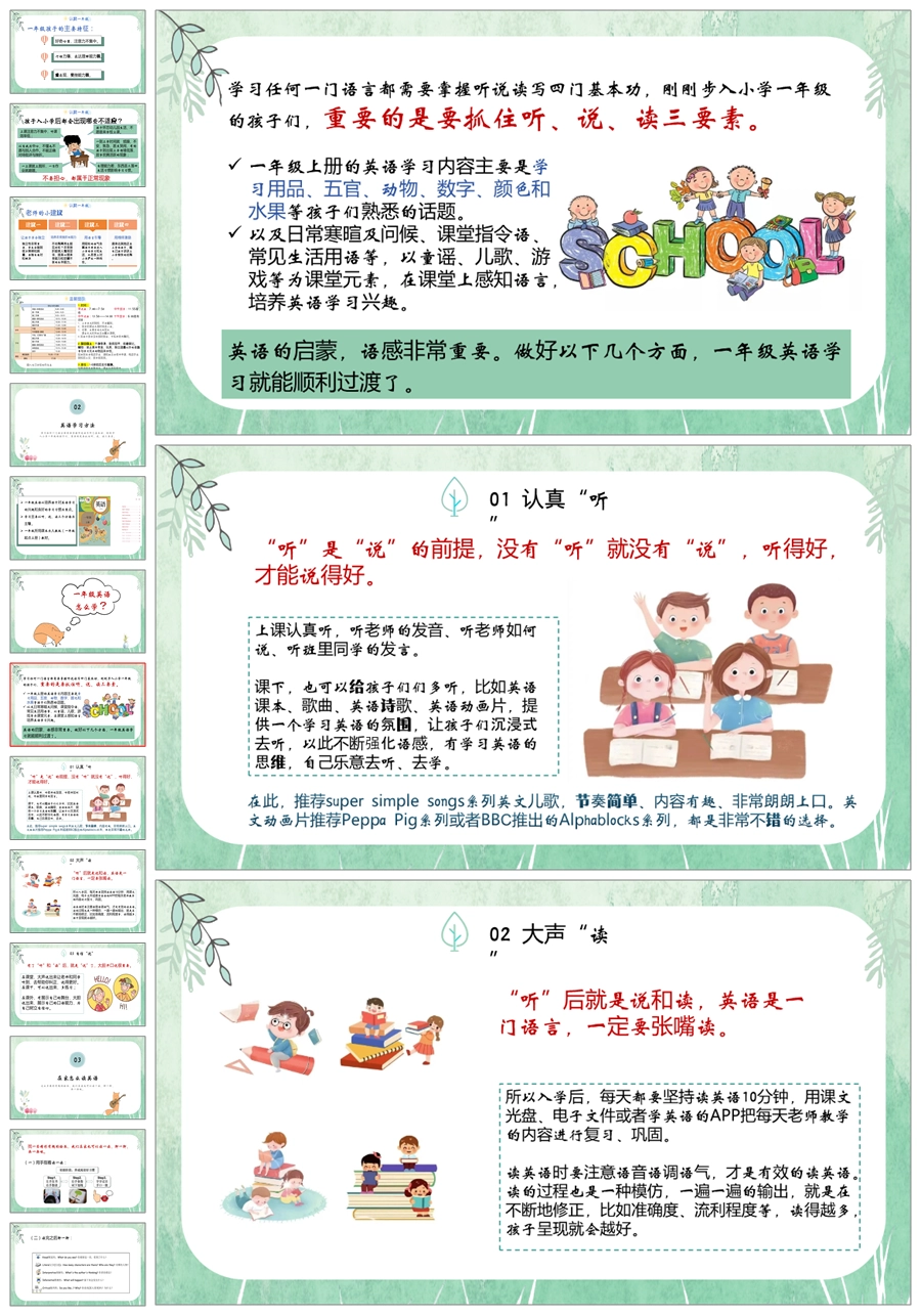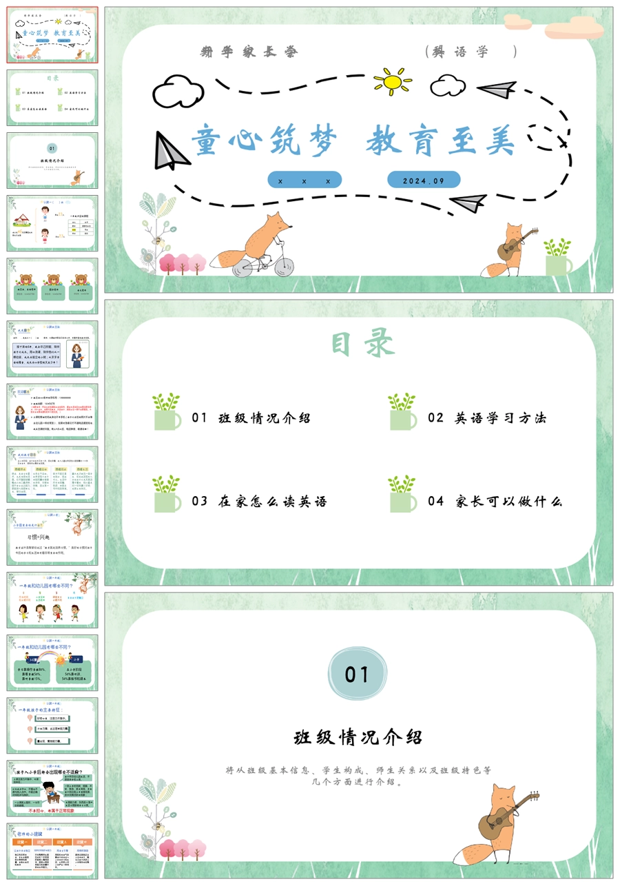 【5237】【一上】【英语】【童心筑梦 教育至美】一年级上学期开学家长会PPT课件+发言稿