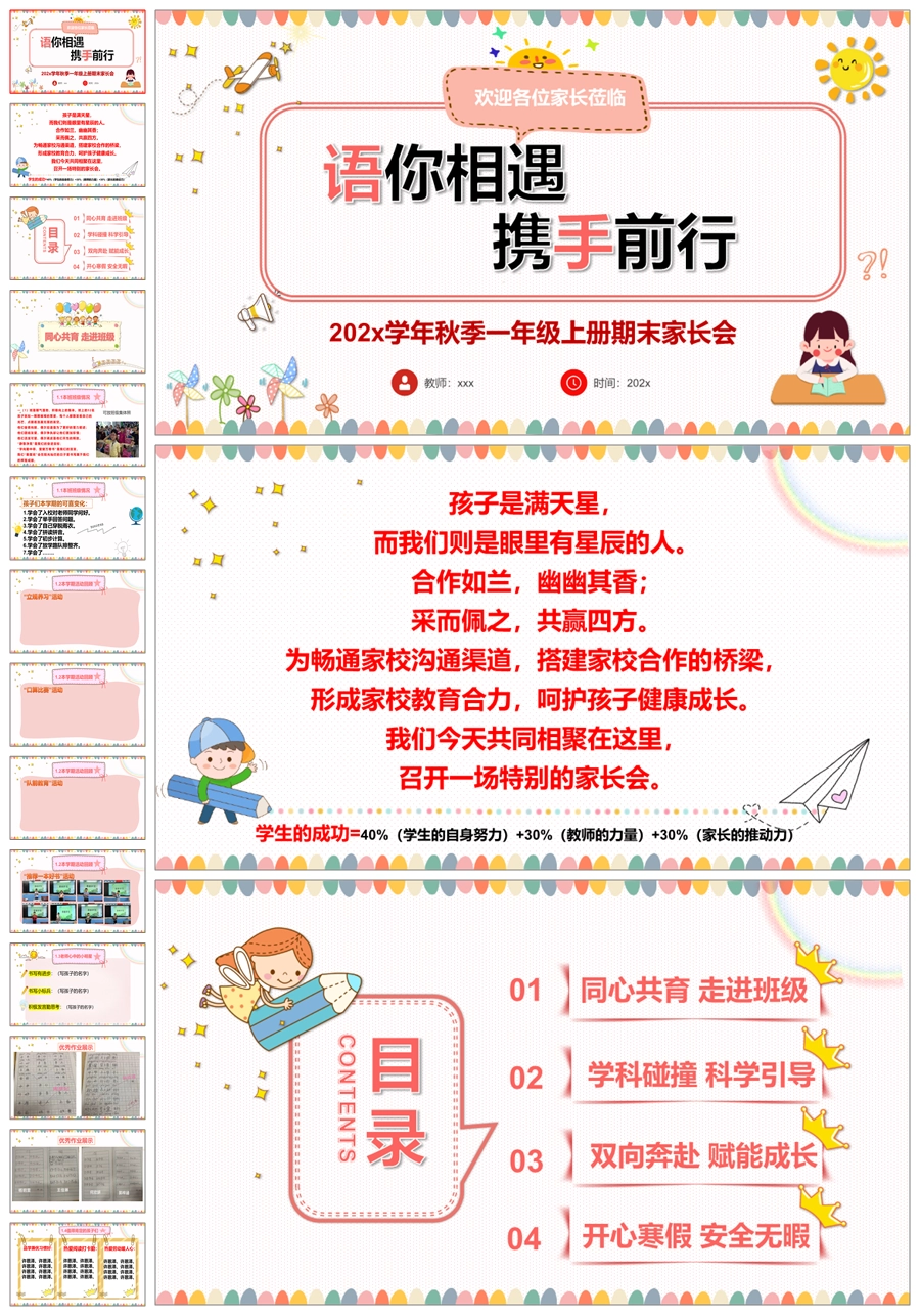 【5238】【一上】【语你相遇 携手前行】一年级上学期期末家长会PPT课件+发言稿