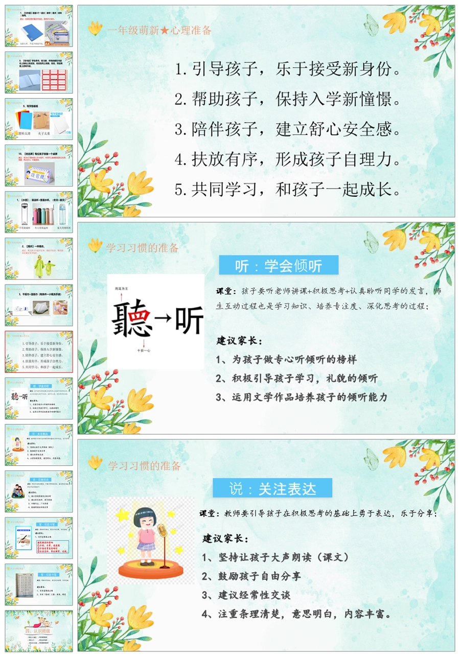 【5239】【一上】【语文】【家校同心 守望花开】一年级上学期开学家长会PPT课件+发言稿