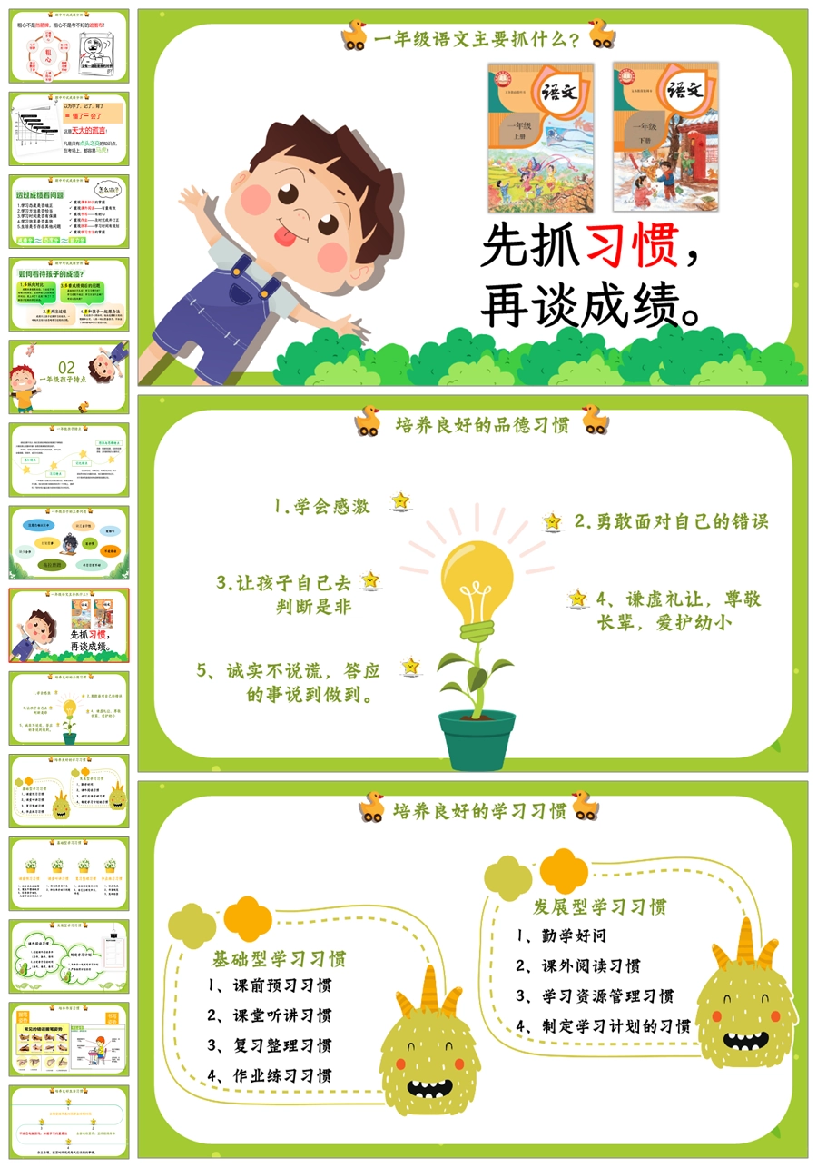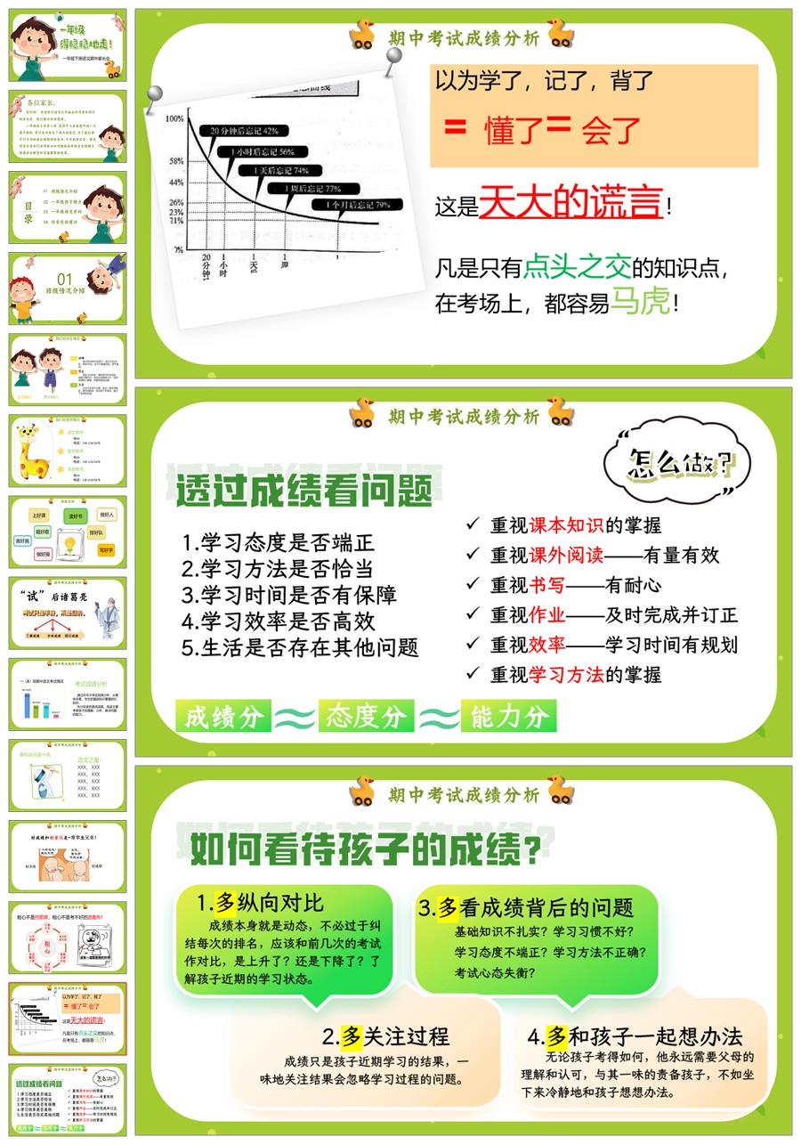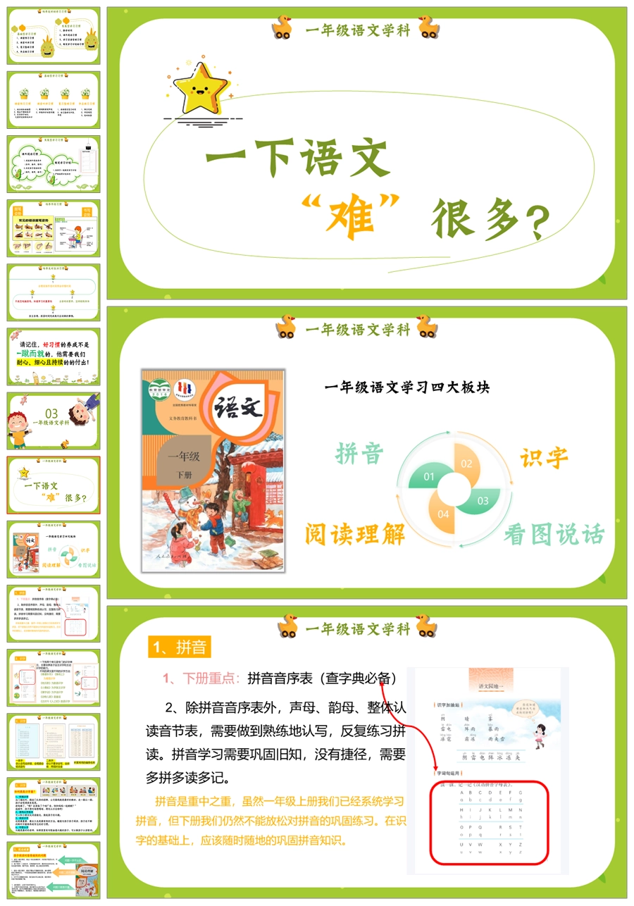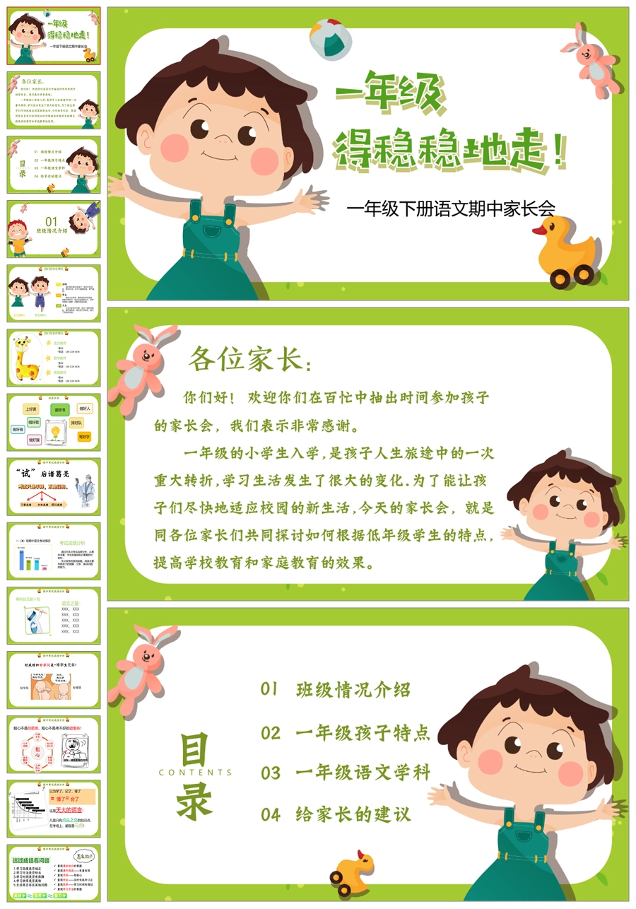 【5255】【一下】【语文】【一年级得稳稳地走】一年级下学期期中家长会PPT课件+发言稿