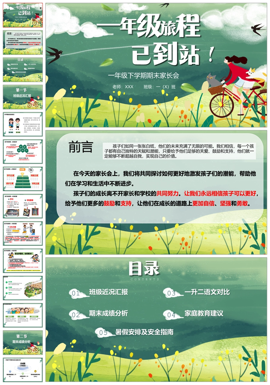 【5256】【一下】【语文】【一年级旅程已到站!】一年级下学期期末家长会PPT课件+发言稿
