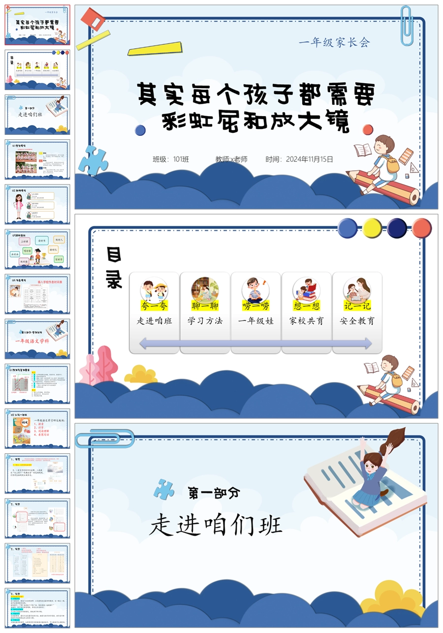 【5247】【一上】语文【每个孩子都需要彩虹屁和放大镜】一年级上学期家长会PPT课件+发言稿
