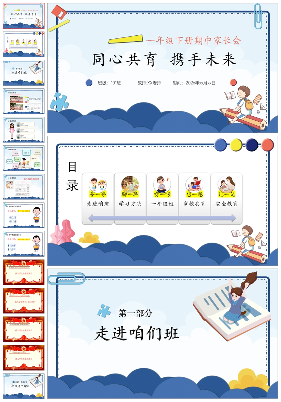 【5262】【一下】语文【同心共育 携手未来】一年级下学期期中家长会PPT课件+发言稿