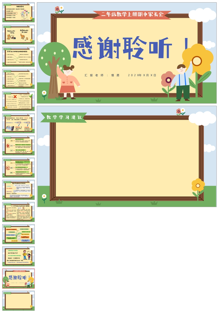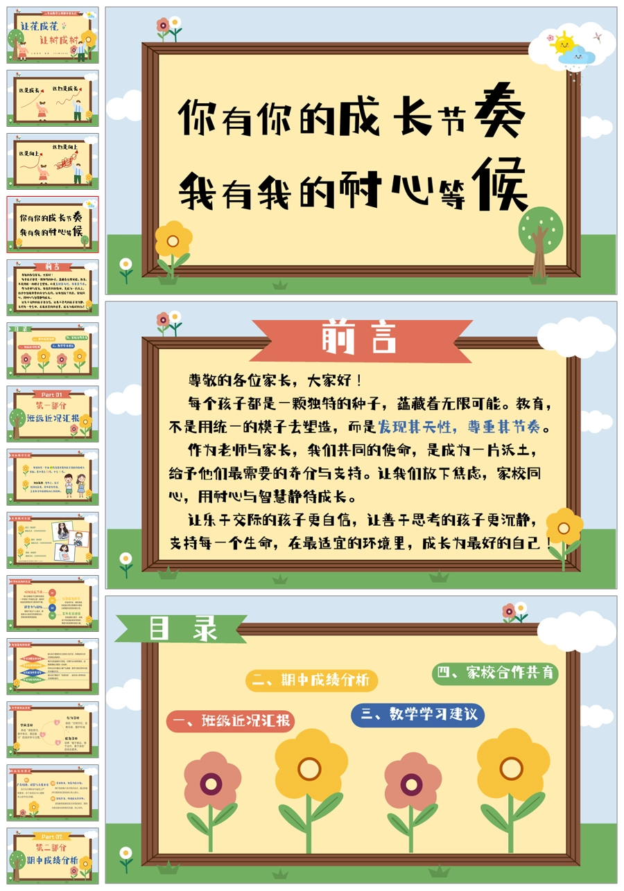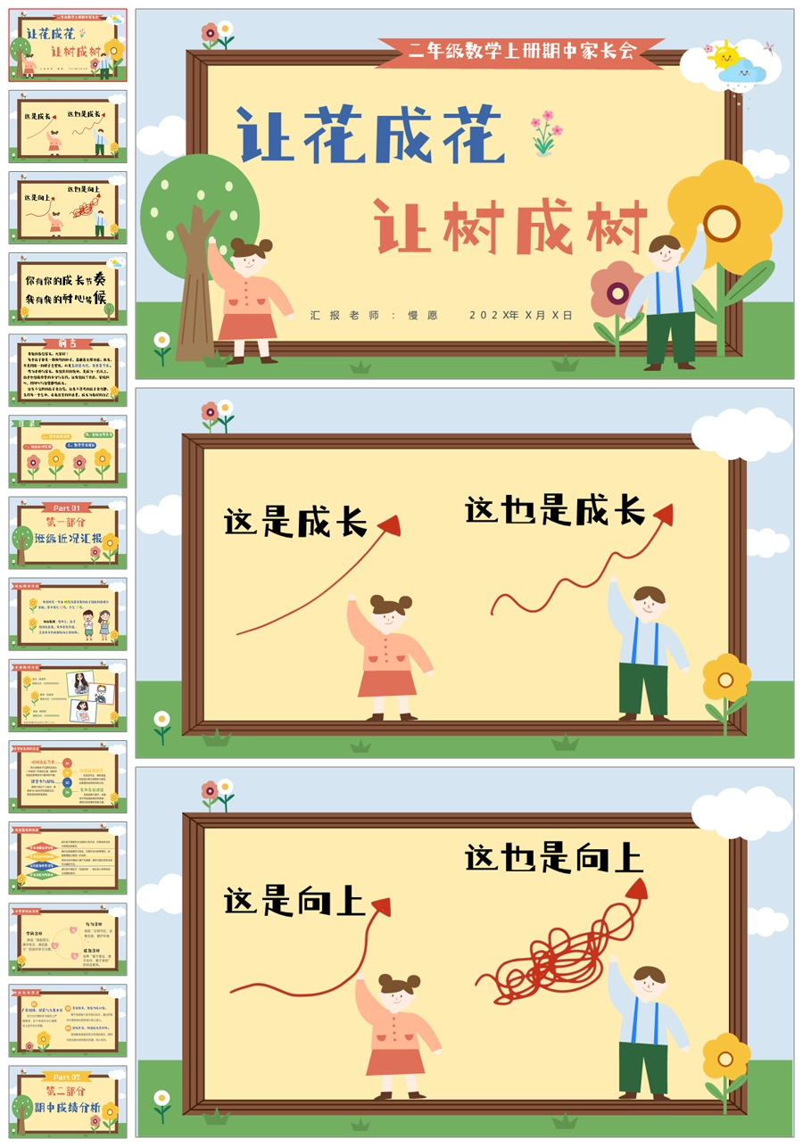 首页 二年级家长会 【5269】【二上】【数学】【让花成花 让树成树】二年级上学期期中家长会PPT课件+发言稿