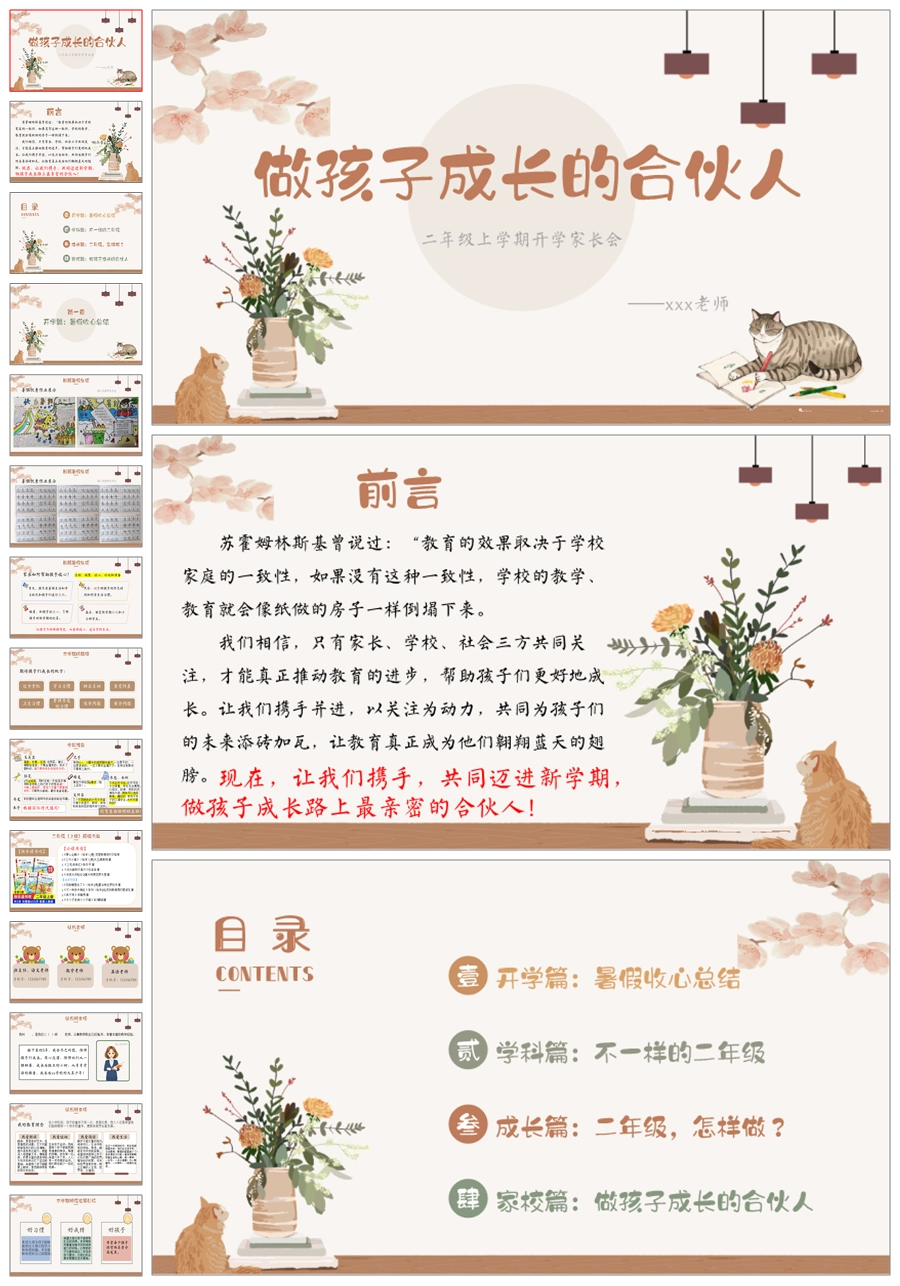 【5274】【二上】【语文】【做孩子成长的合伙人】二年级上学期开学家长会PPT课件+发言稿