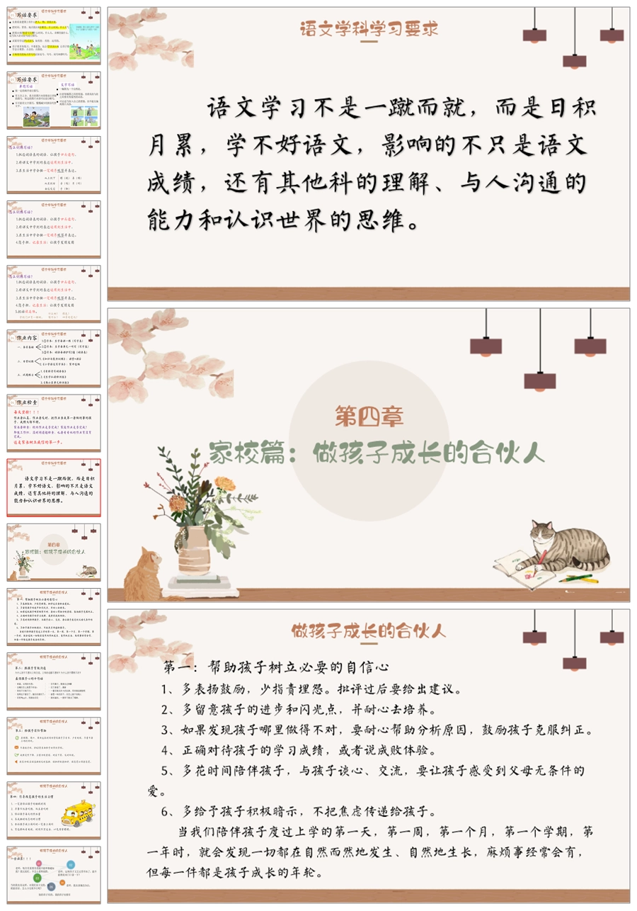 首页 二年级家长会 【5274】【二上】【语文】【做孩子成长的合伙人】二年级上学期开学家长会PPT课件+发言稿