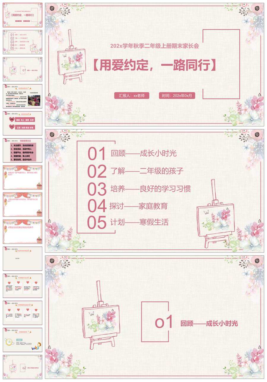 首页 二年级家长会 【5279】【二上】语文【用爱约定,一路同行】二年级上学期期末家长会PPT课件+发言稿