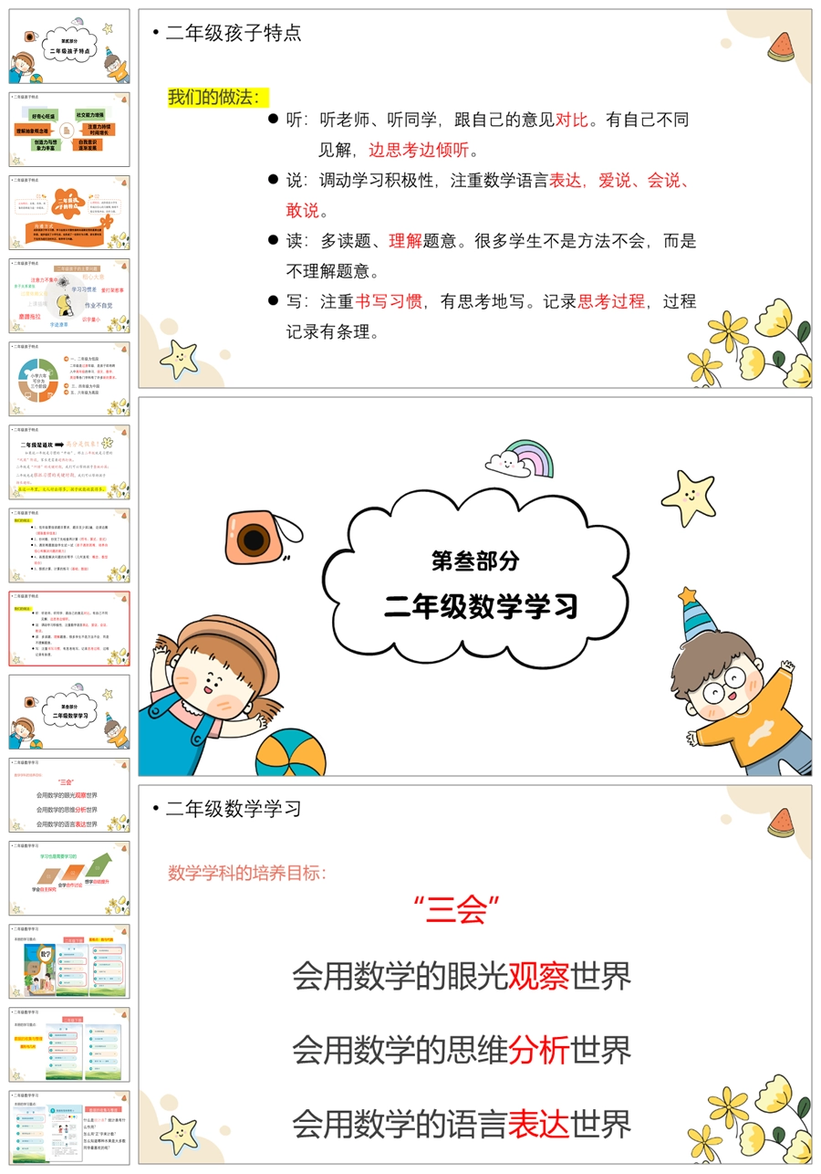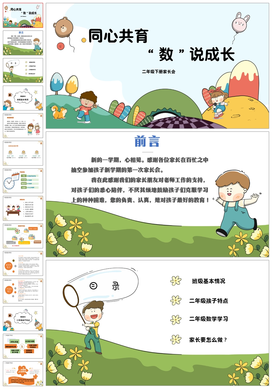 【5282】【二下】【数学】【同心共育 “数”说成长】二年级下学期开学家长会PPT课件+发言稿
