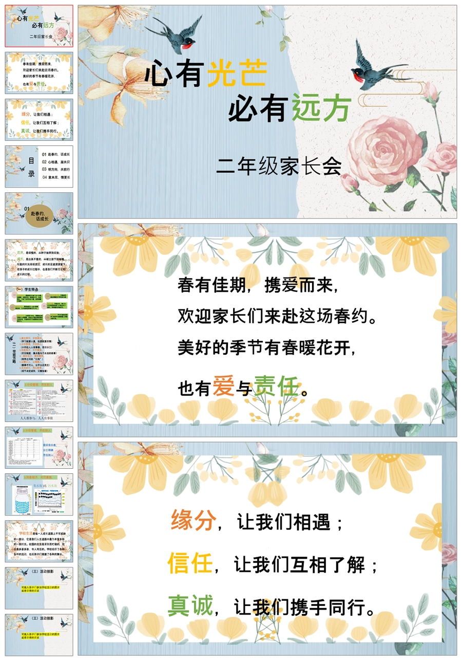 【5298】【二下】语文【心有光芒,必有远方】二年级下学期开学家长会PPT课件+发言稿