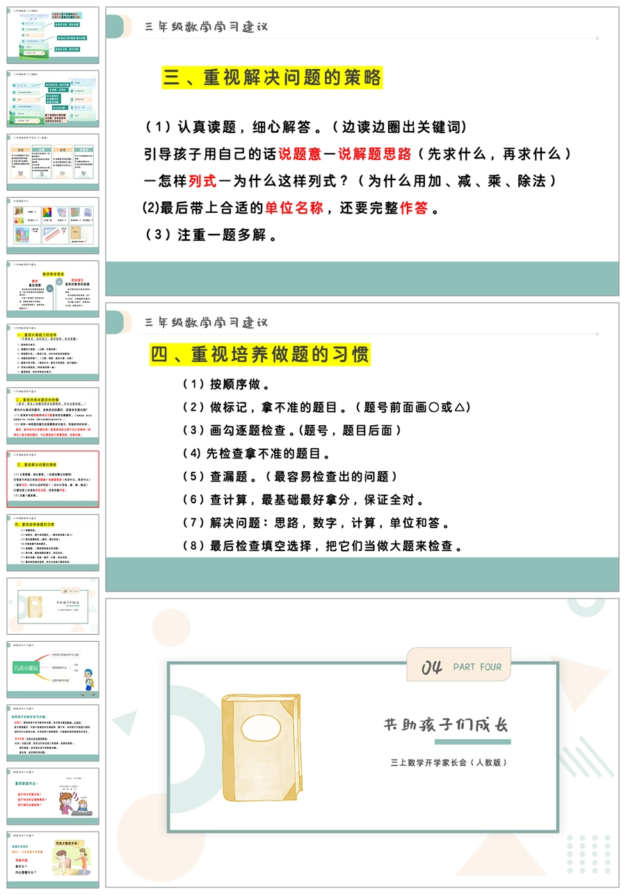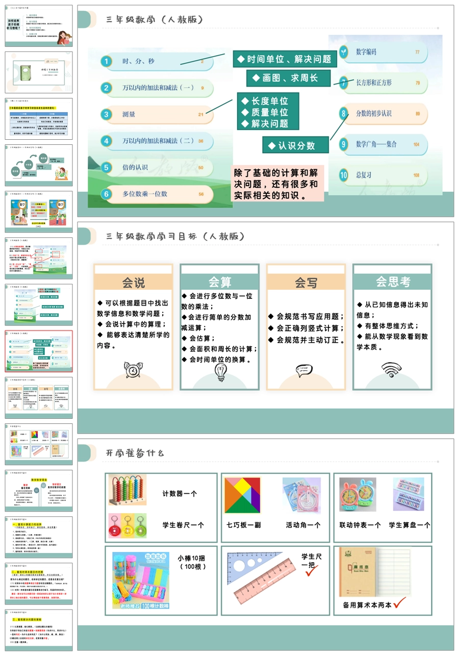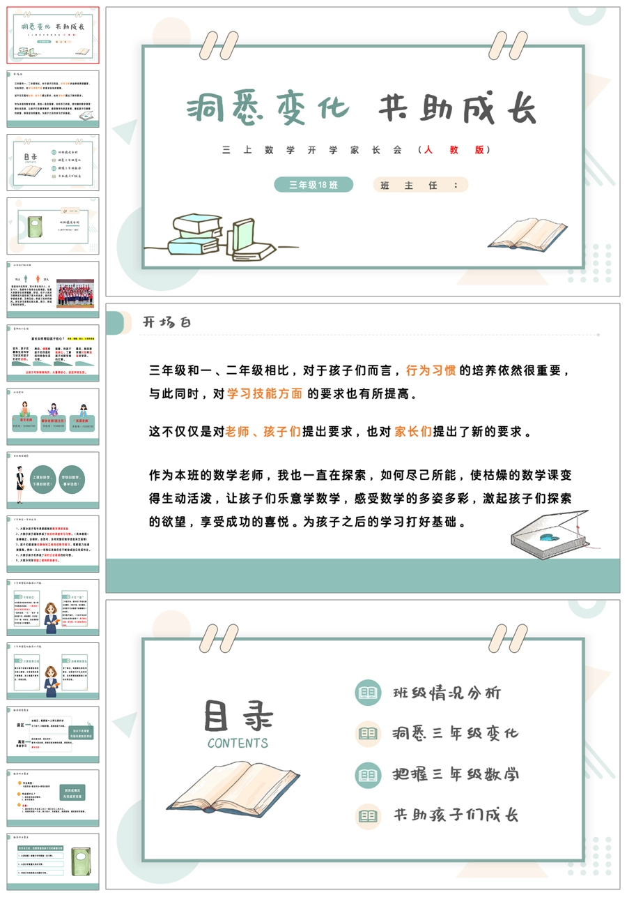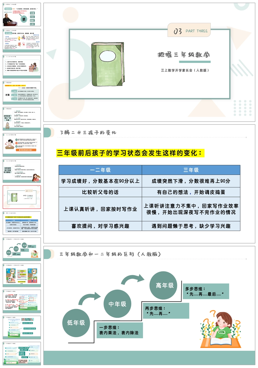 【5303】【三上】【数学】【洞悉变化 共助成长】三年级上学期开学家长会-人教版PPT课件+发言稿