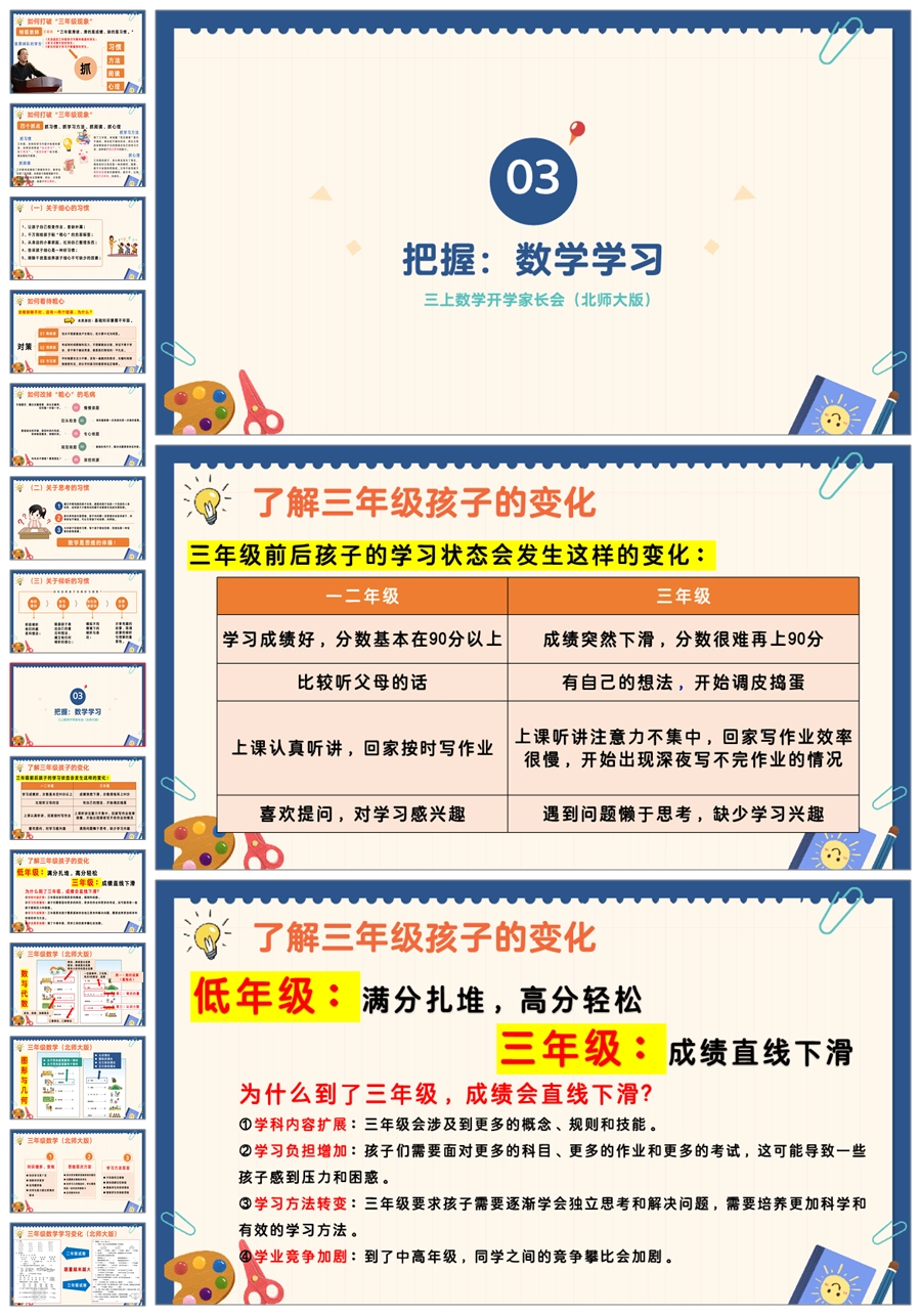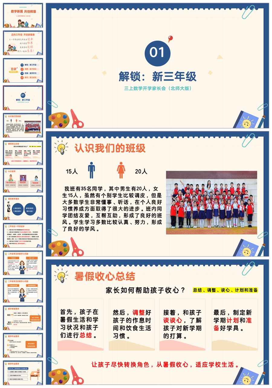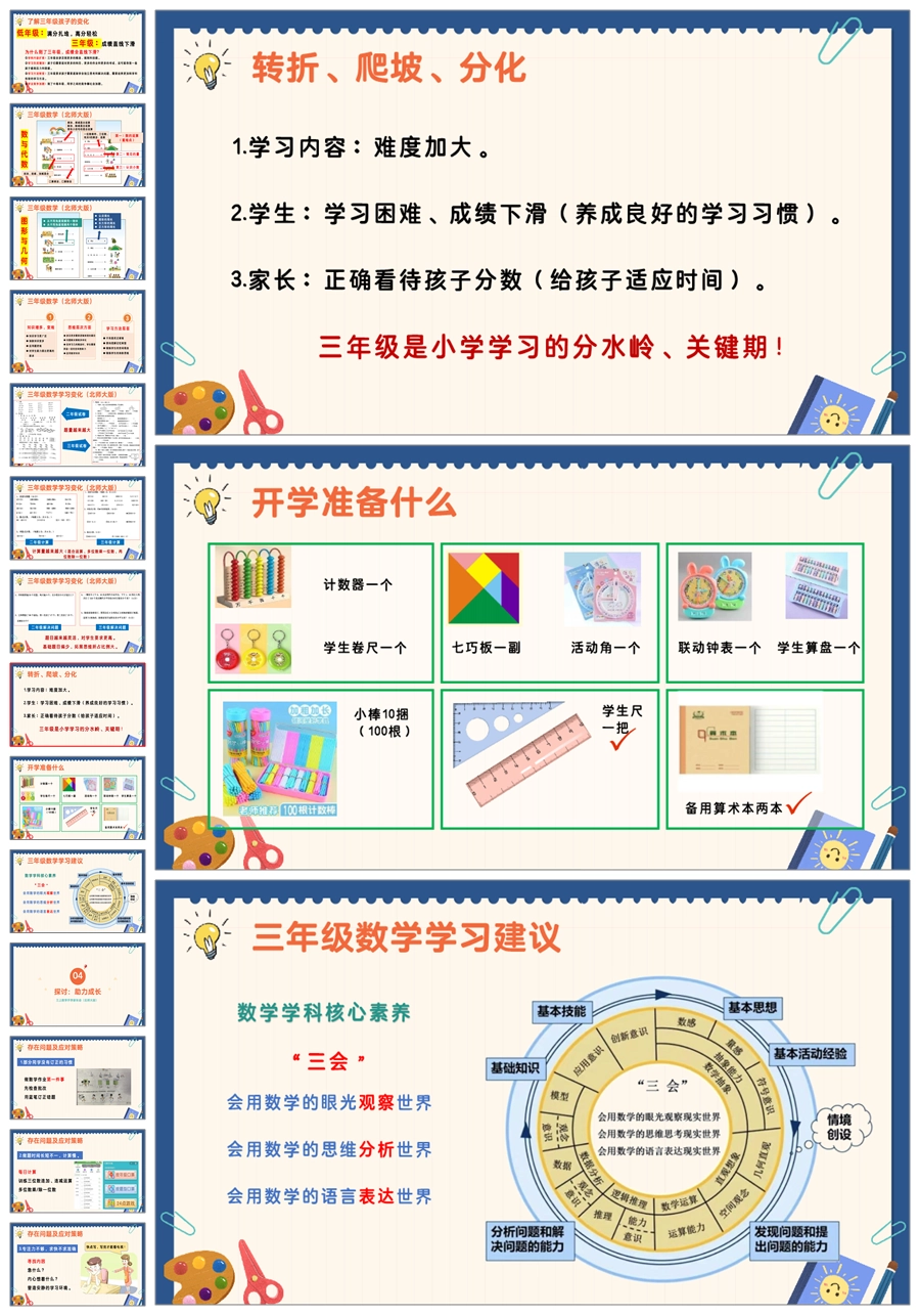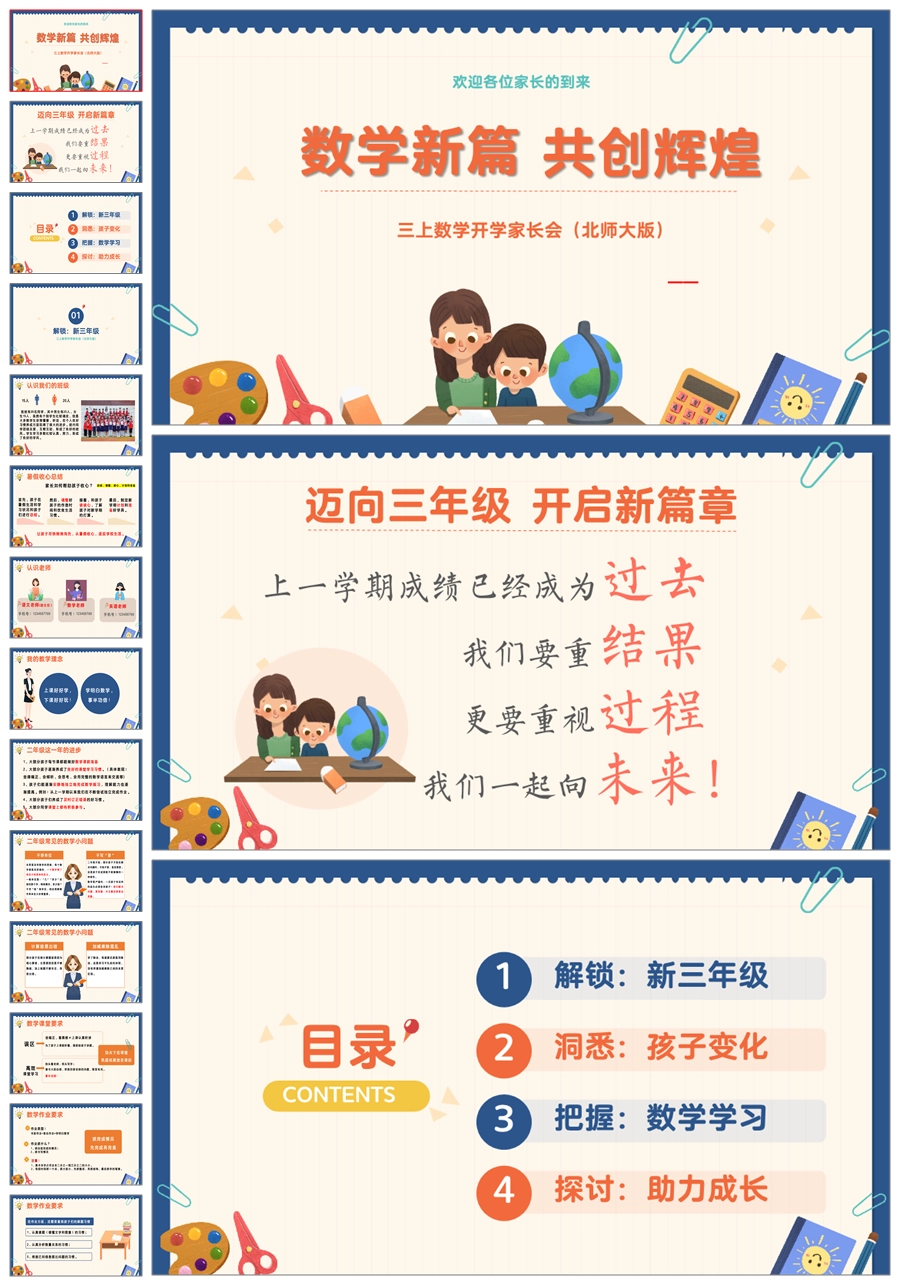 【5308】【三上】【数学】【数学新篇 共创辉煌】三年级上学期开学家长会-北师大版PPT课件+发言稿