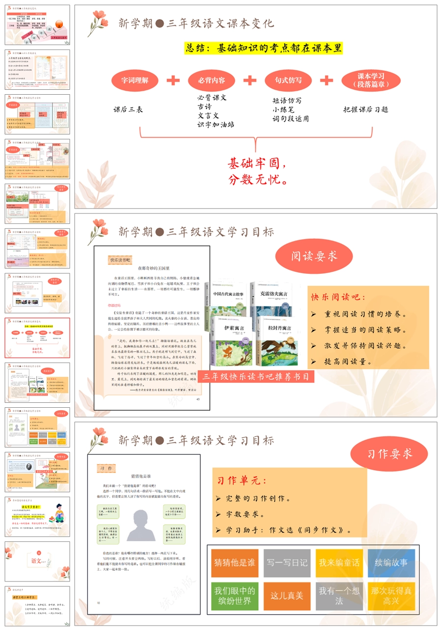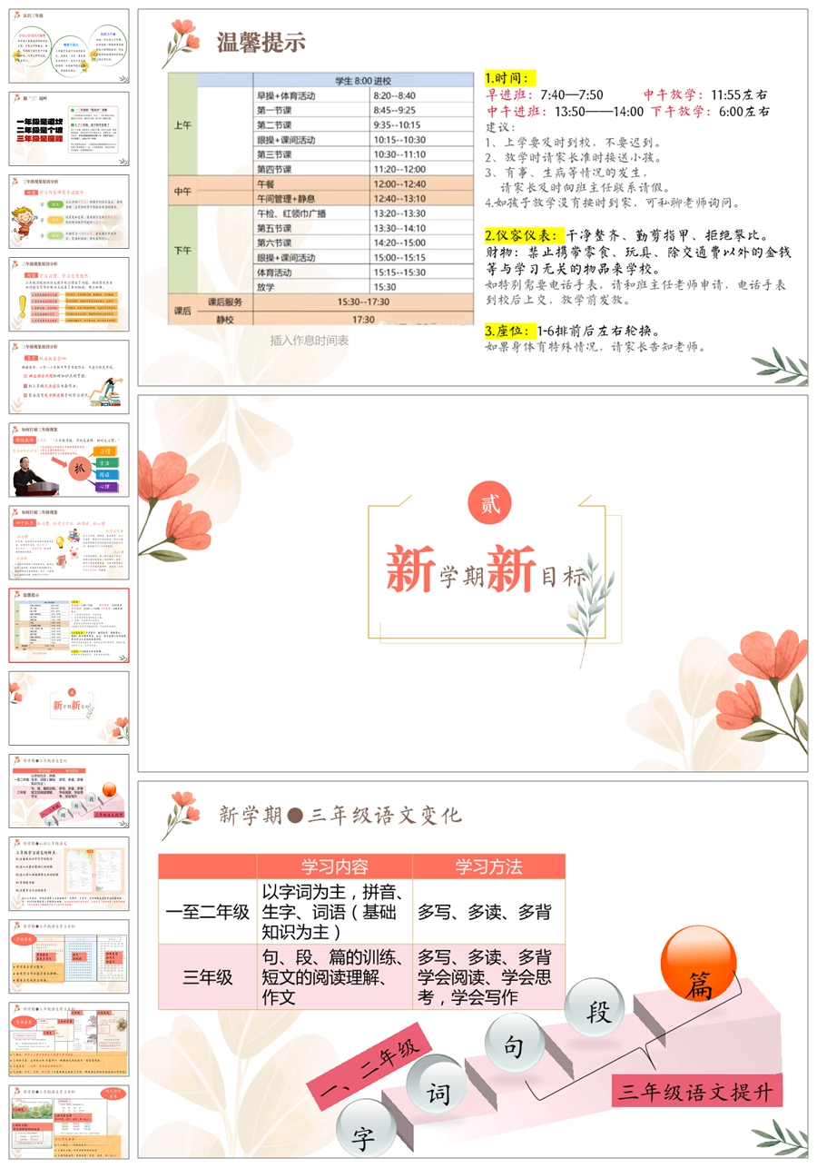 【5312】【三上】【语文】【翻“三”越岭 只为等“花”开】三年级上学期开学家长会PPT课件+发言稿