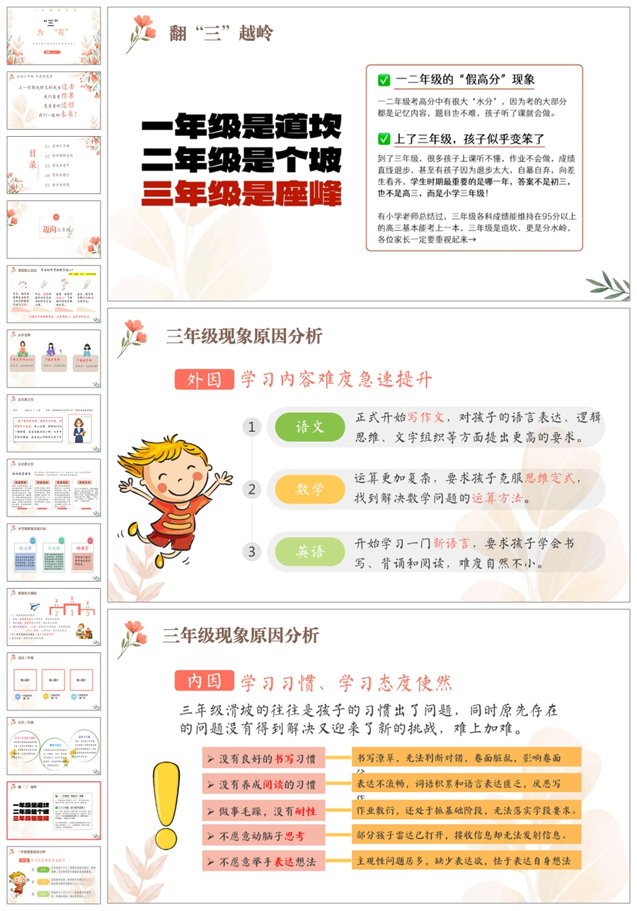 首页 三年级家长会 【5312】【三上】【语文】【翻“三”越岭 只为等“花”开】三年级上学期开学家长会PPT课件+发言稿